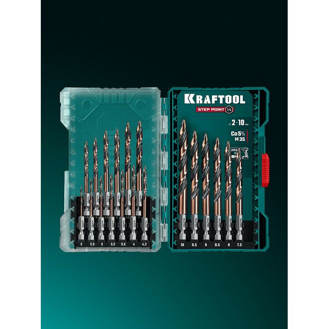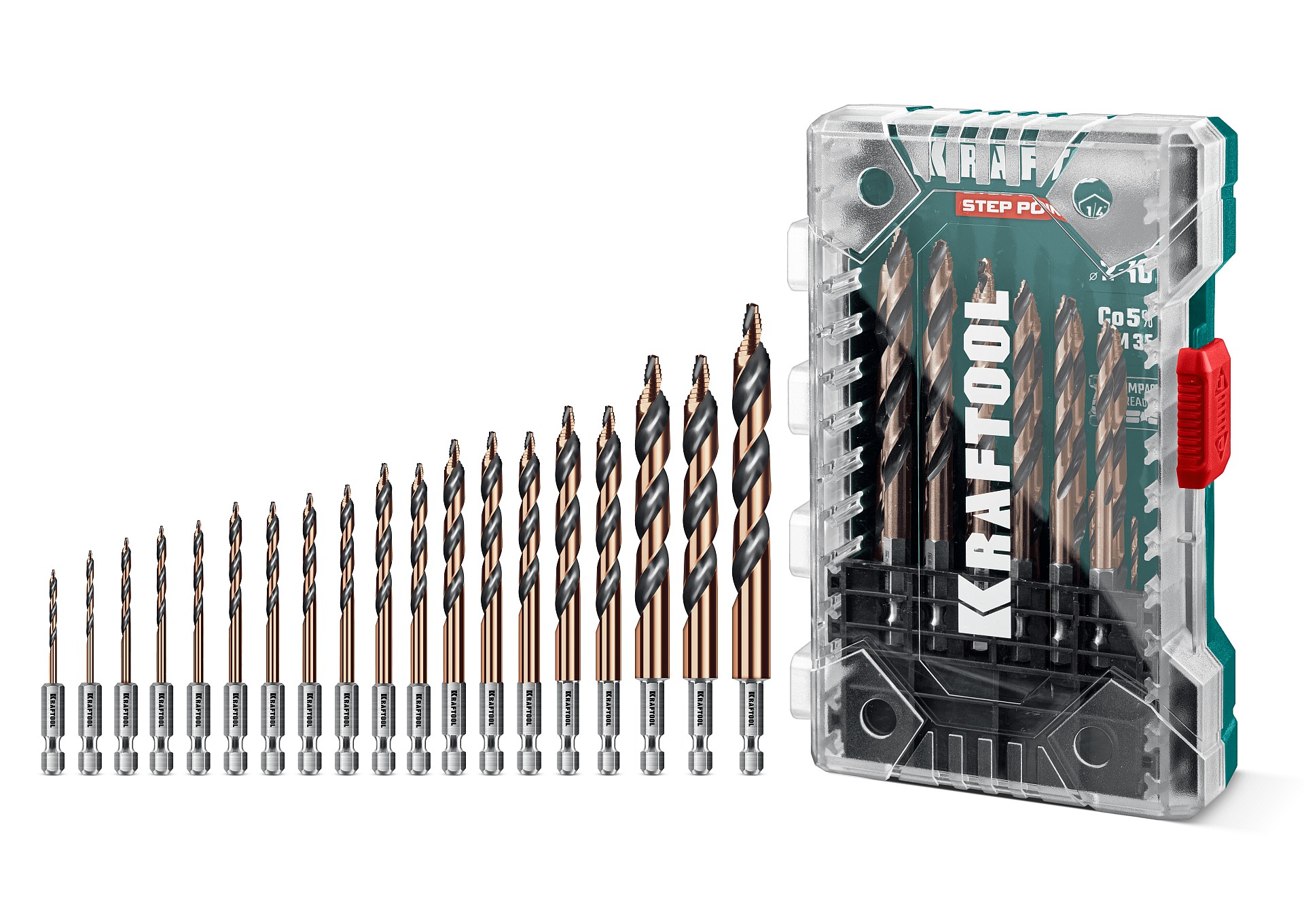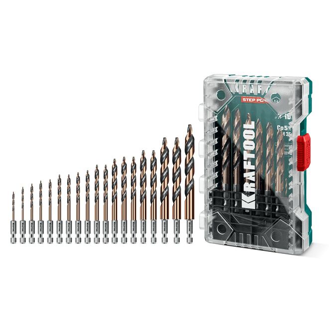 KRAFTOOL STEP POINT, 19 шт, набор сверл по металлу для винтовёртов и шуруповертов IMPACT READY (29653-H19)