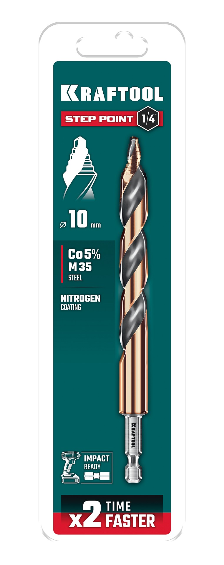 KRAFTOOL STEP POINT, d 10.0 х 133 мм, сверло по металлу для винтовёртов и шуруповертов IMPACT READY (29653-10)