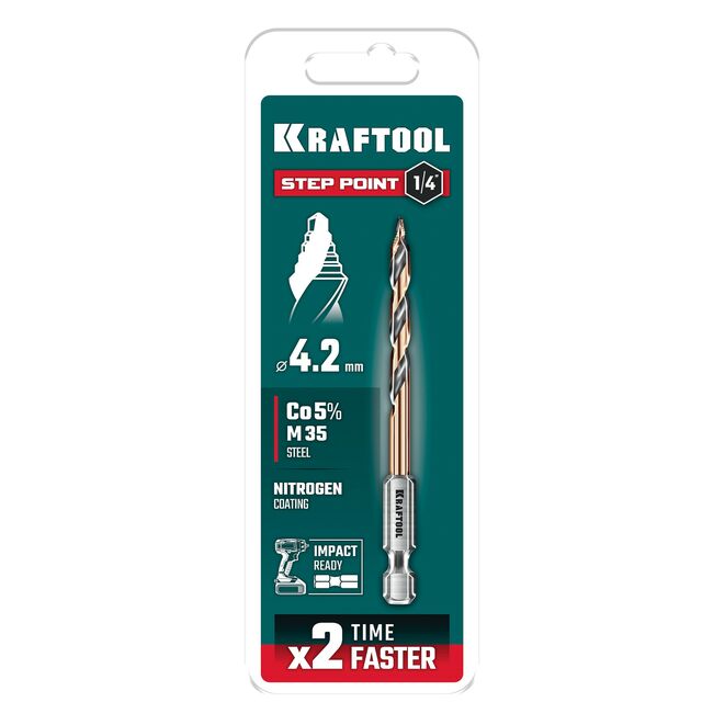 KRAFTOOL STEP POINT, d 4.2 х 83 мм, сверло по металлу для винтовёртов и шуруповертов IMPACT READY (29653-4.2)