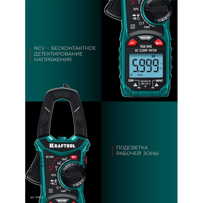 KRAFTOOL KC-300 Цифровые токовые клещи (59832)