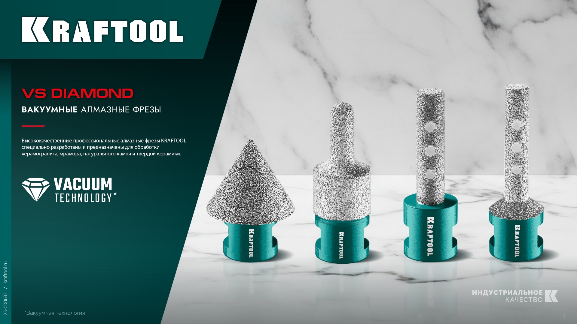 Профессиональные алмазные фрезы Kraftool произведены по технологии высокотемпературной вакуумной спайки алмазов, что обеспечивает высокую скорость обработки и большой ресурс.Применение
