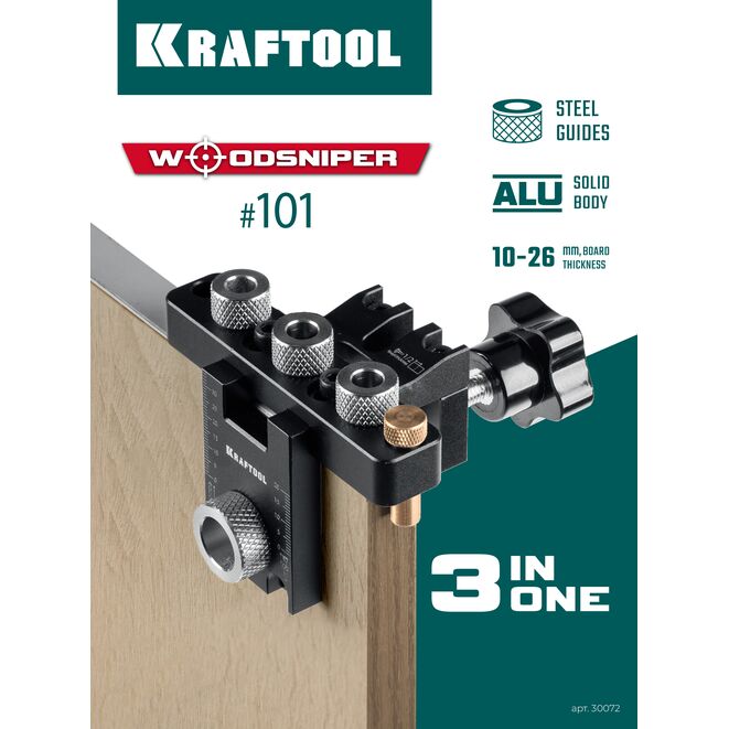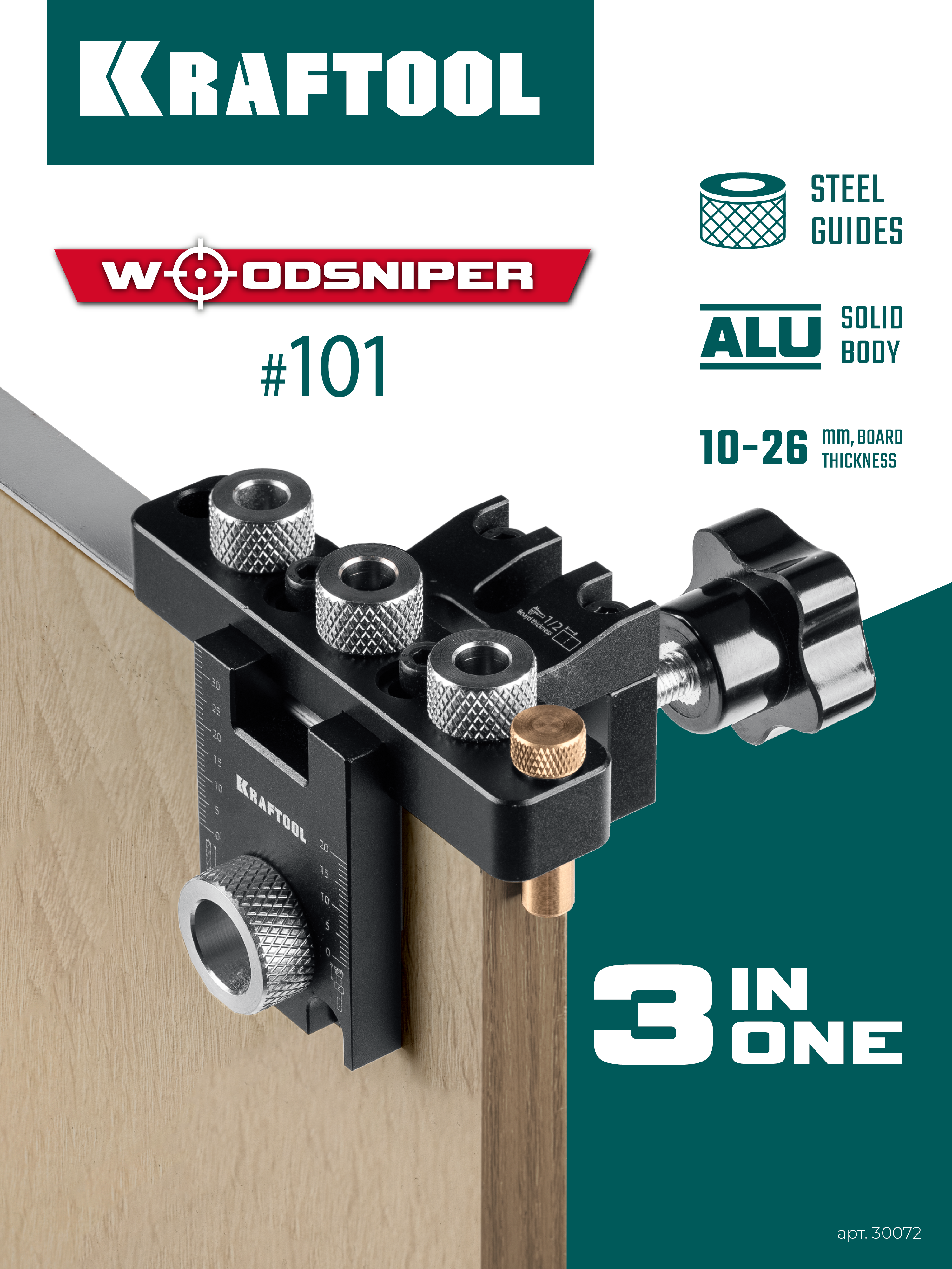 KRAFTOOL Woodsniper 101, "3-в-1" кондуктор для эксцентриковых стяжек и шкантов (30072)