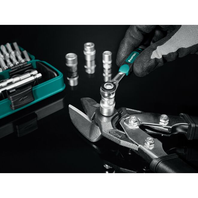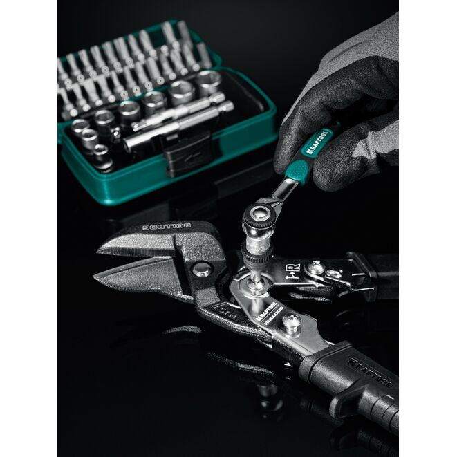Набор инструментов KRAFTOOL 27974, предназначен для слесарных и монтажных работ. Инструменты из высококачественной хромованадиевой стали. Биты из хромомолибденовой стали S2. Профиль Super Lock. Рабочие поверхности закалены. Хроматированное покрытие защищает от коррозии и увеличивает срок службы. Удобный кейс для хранения и переноски инструмента. В комплект входит:Трещотка-битодержатель - 1 шт.