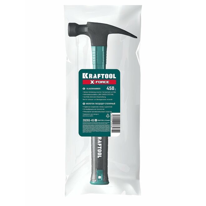 Молоток-гвоздодер KRAFTOOL 20265-45_z02, предназначен для слесарно-монтажных работ. Ударный инструмент для плотницких работ.Характеристики Kraftool 20265-45_z02: