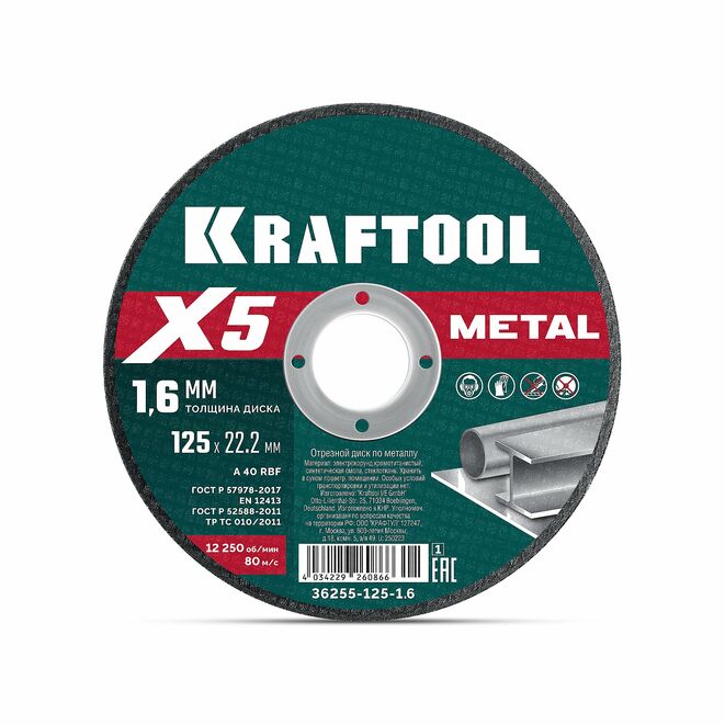 KRAFTOOL X5 Metal 125x1.6 мм по металлу отрезной диск для УШМ (36255-125-1.6_z01)