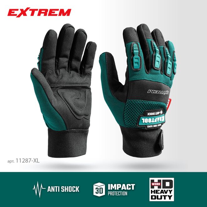 KRAFTOOL EXTREM, XL, для тяжелых мех. работ, антивибрационные, с резиновыми накладками, профессиональные комбинированные перчатки (11287-XL)