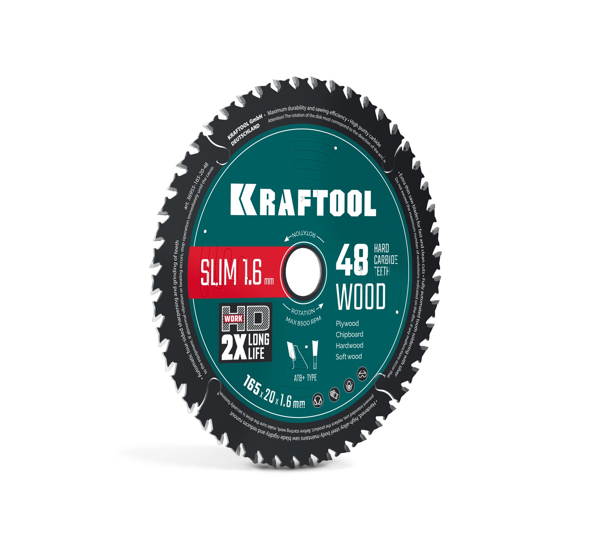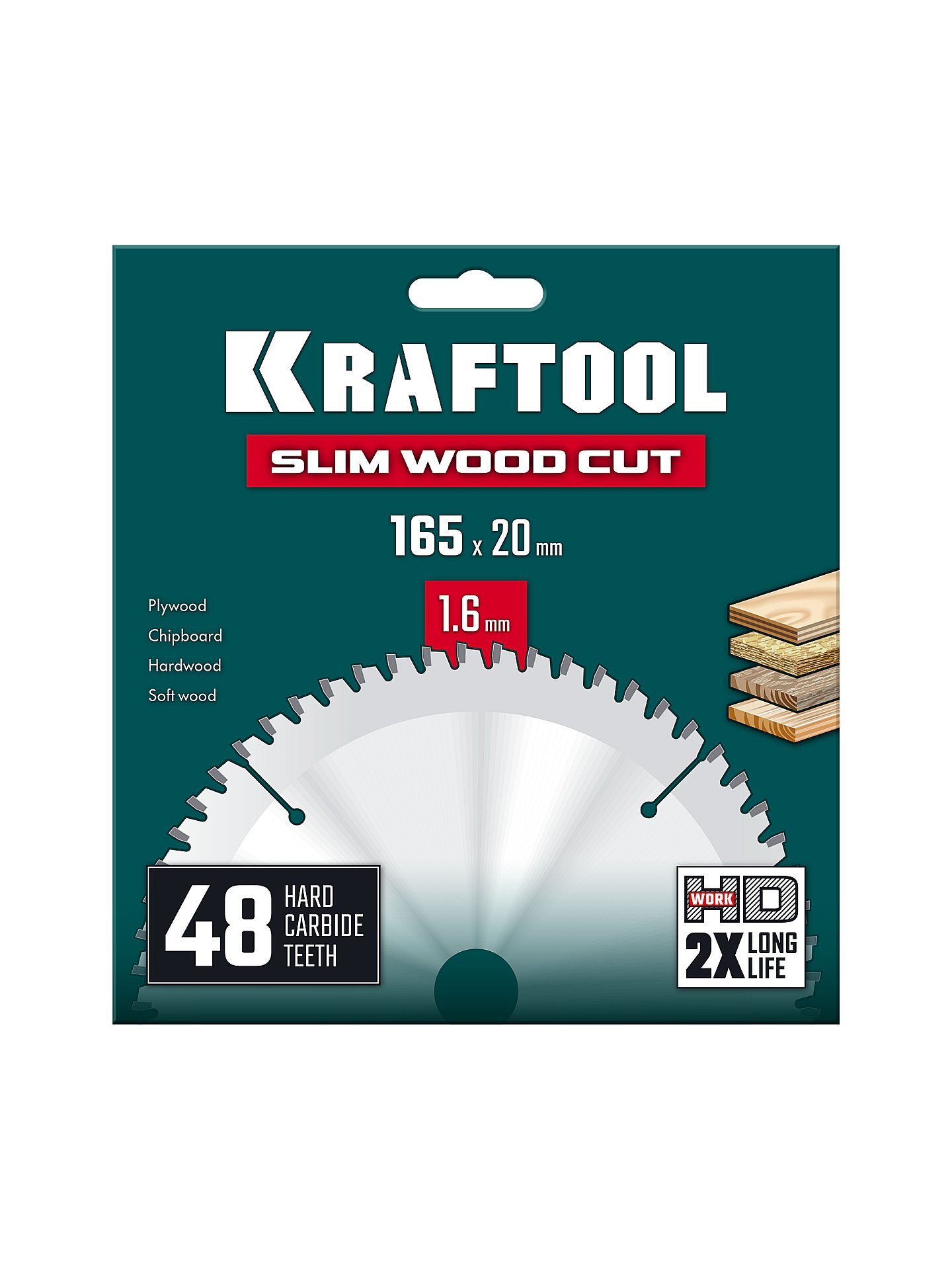 KRAFTOOL Slim wood cut 165 х 20 x 1.6 мм, 48Т, диск пильный по дереву (36955-165-20-48)