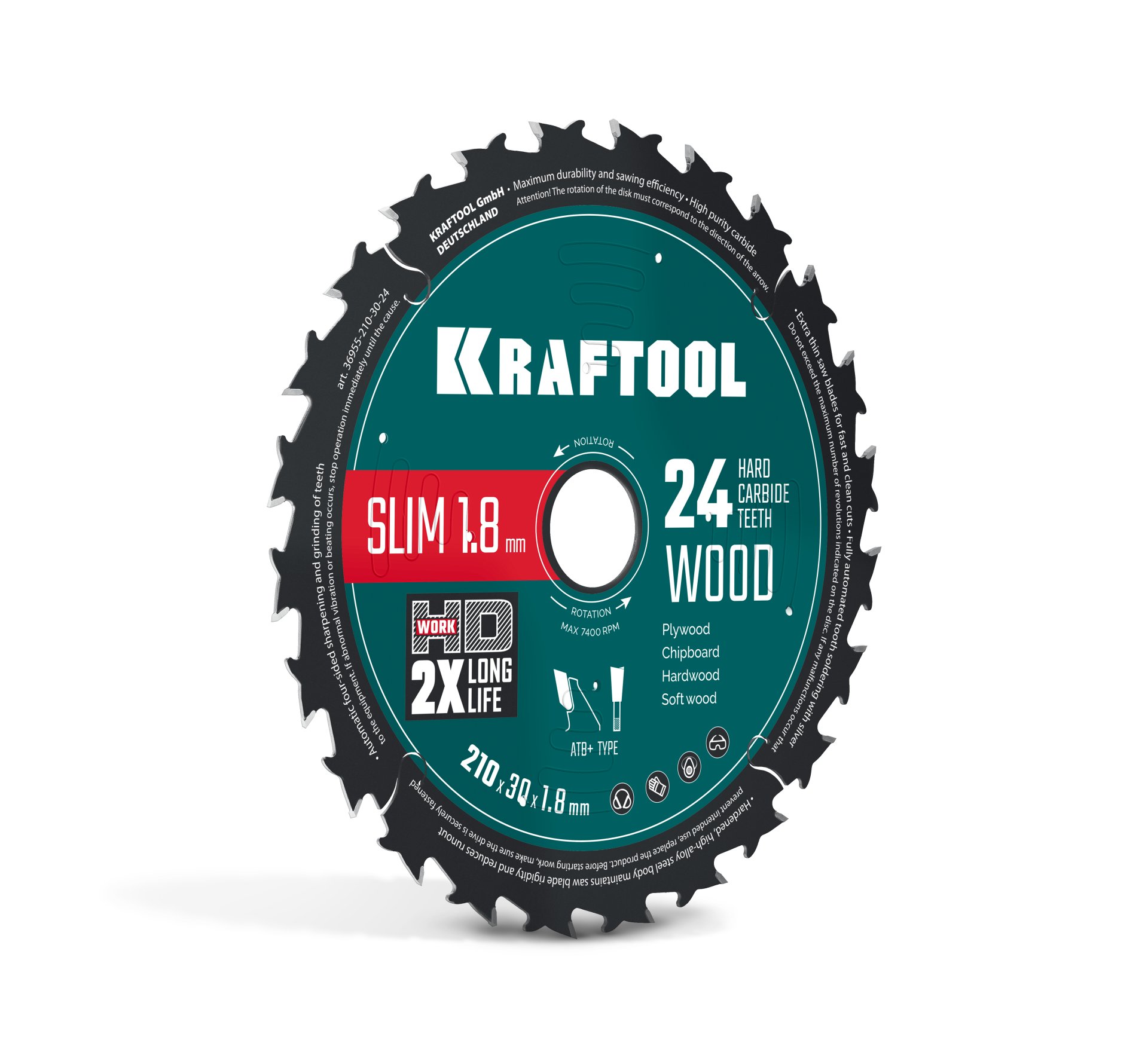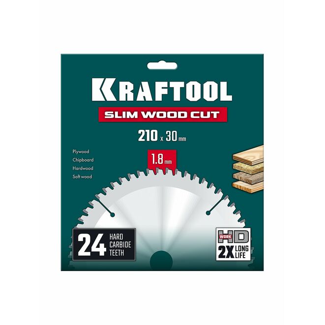 KRAFTOOL Slim wood cut 210 х 30 x 1.8 мм, 24Т, диск пильный по дереву (36955-210-30-24)