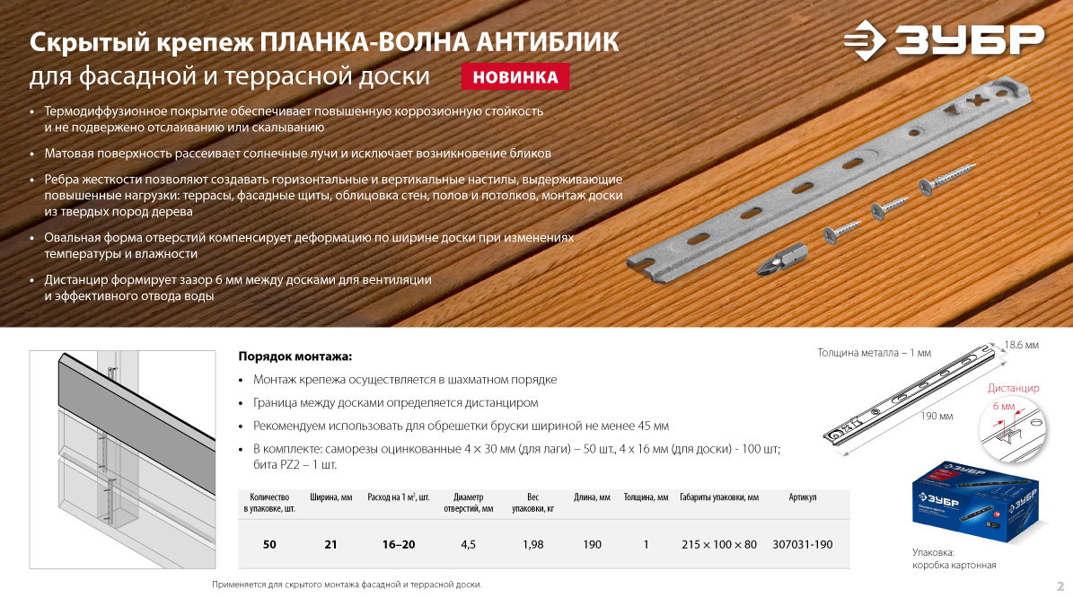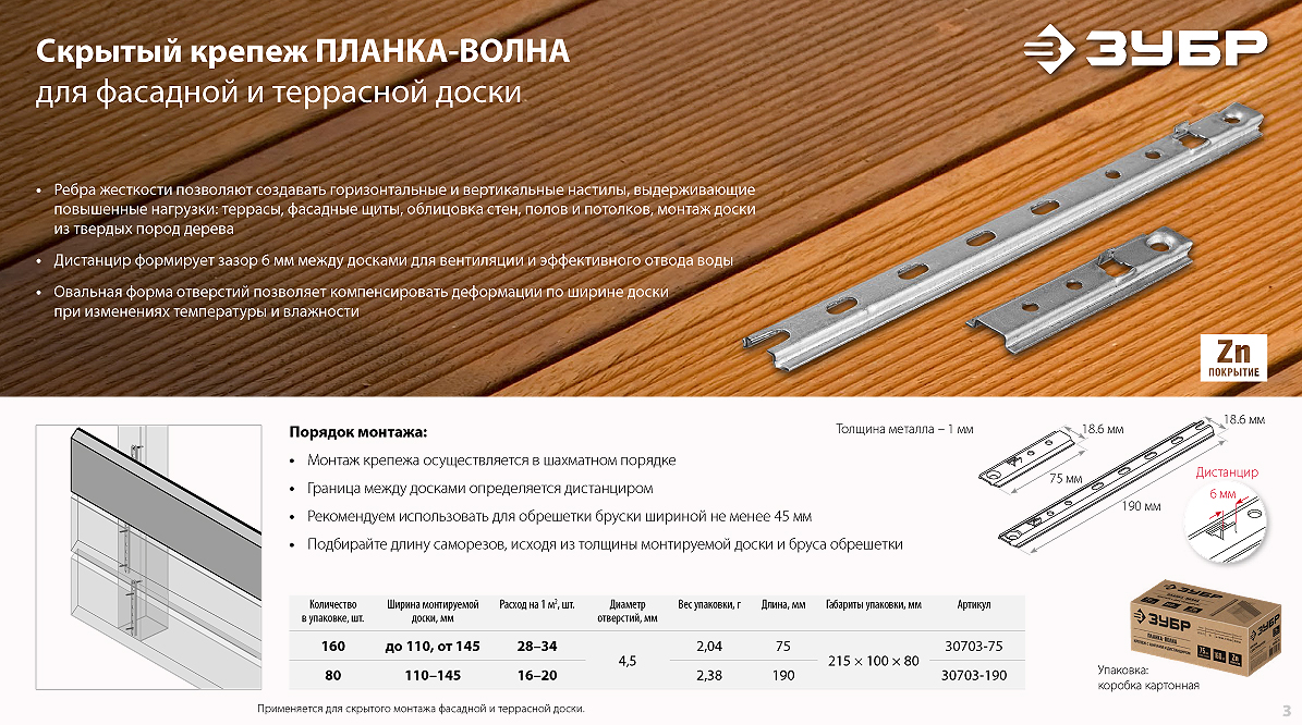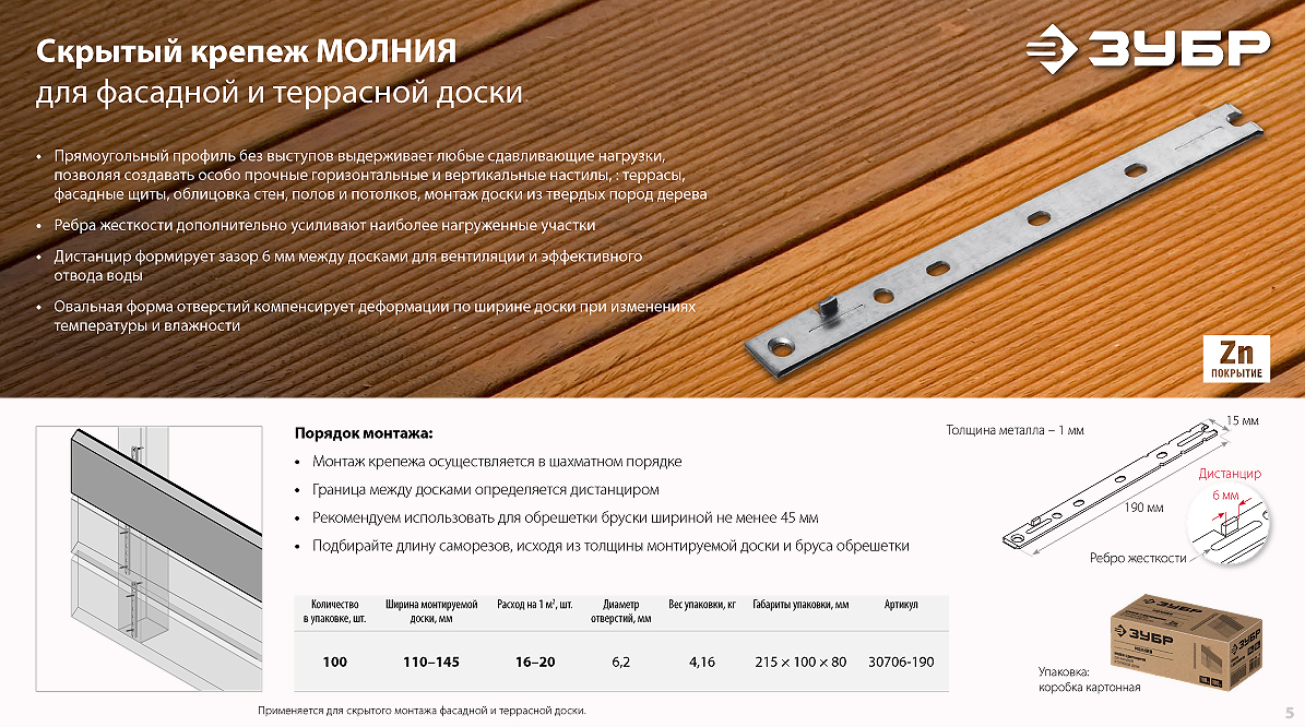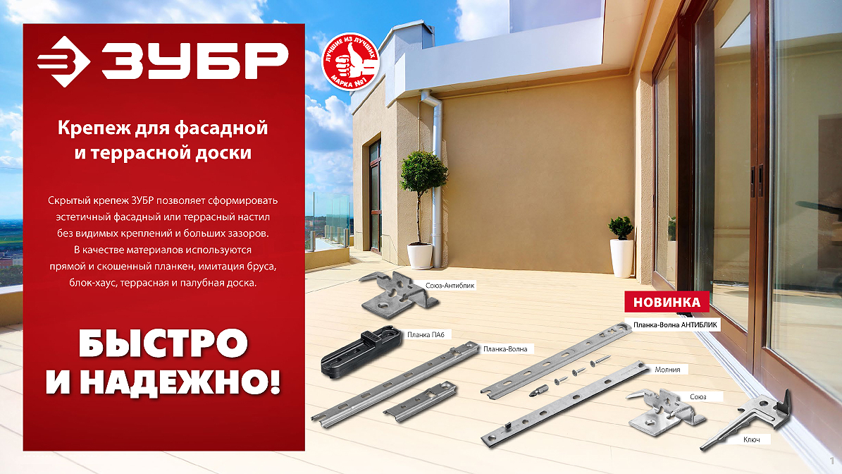 Крепеж для фасадной и террасной доски ЗУБР. Быстро и надежно!
