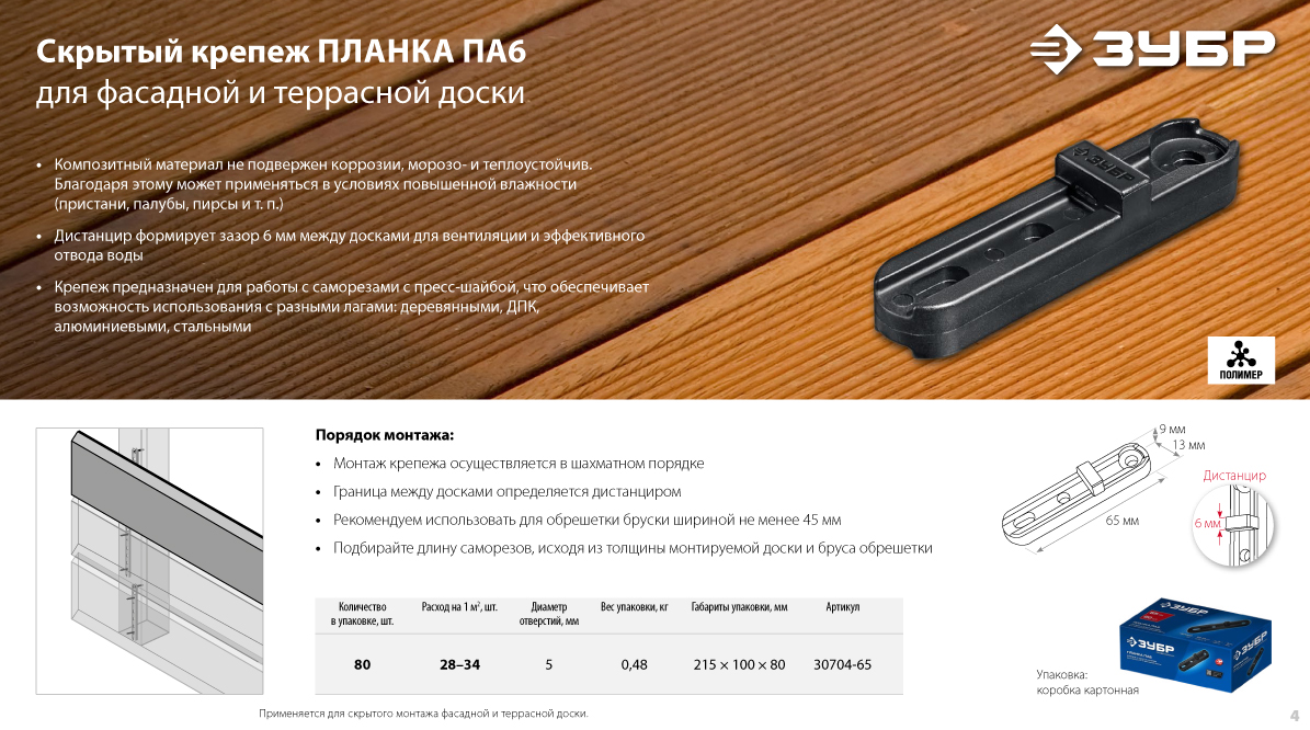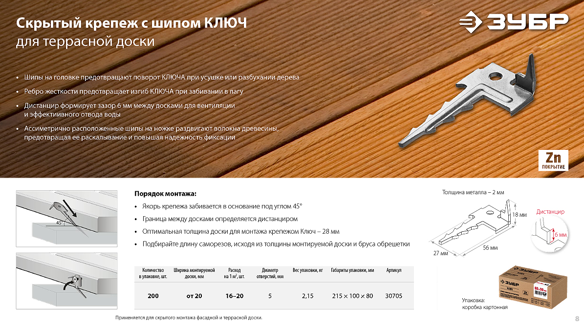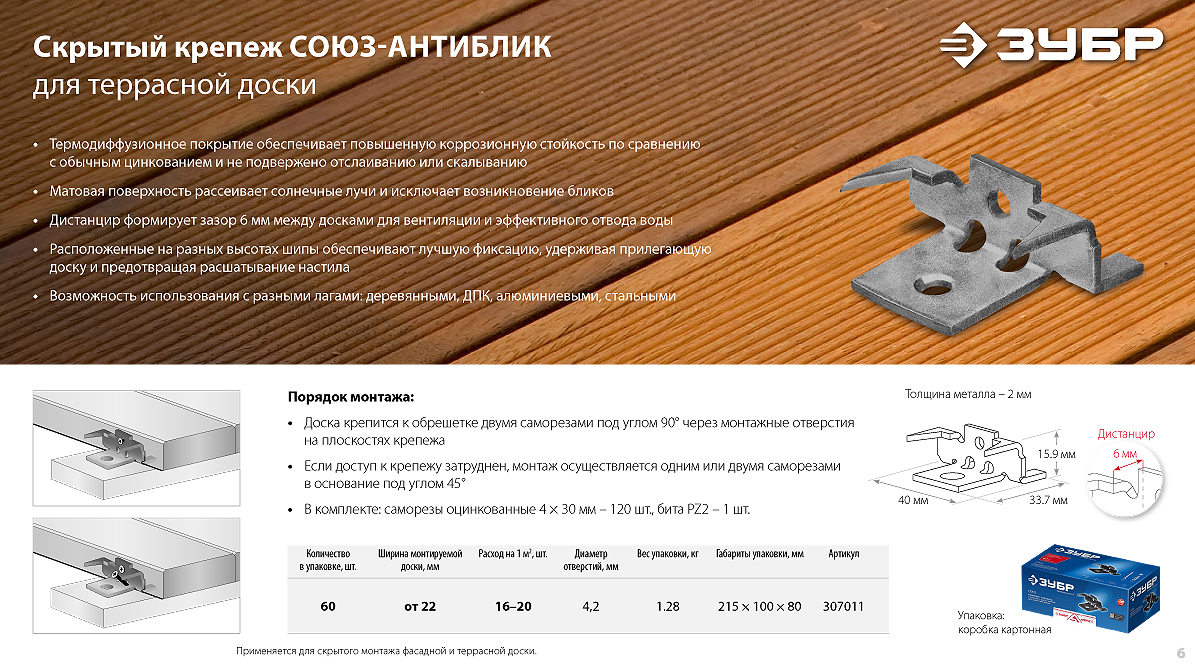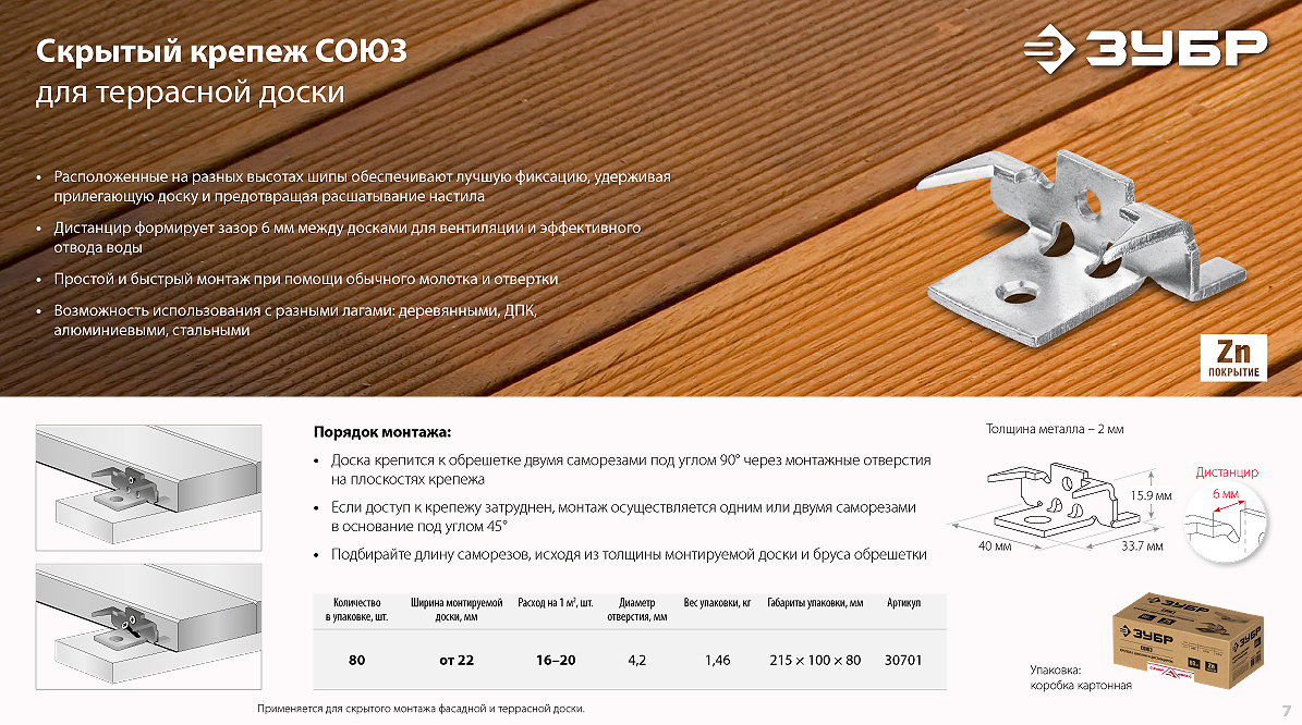 Крепеж для фасадной и террасной доски ЗУБР. Быстро и надежно!