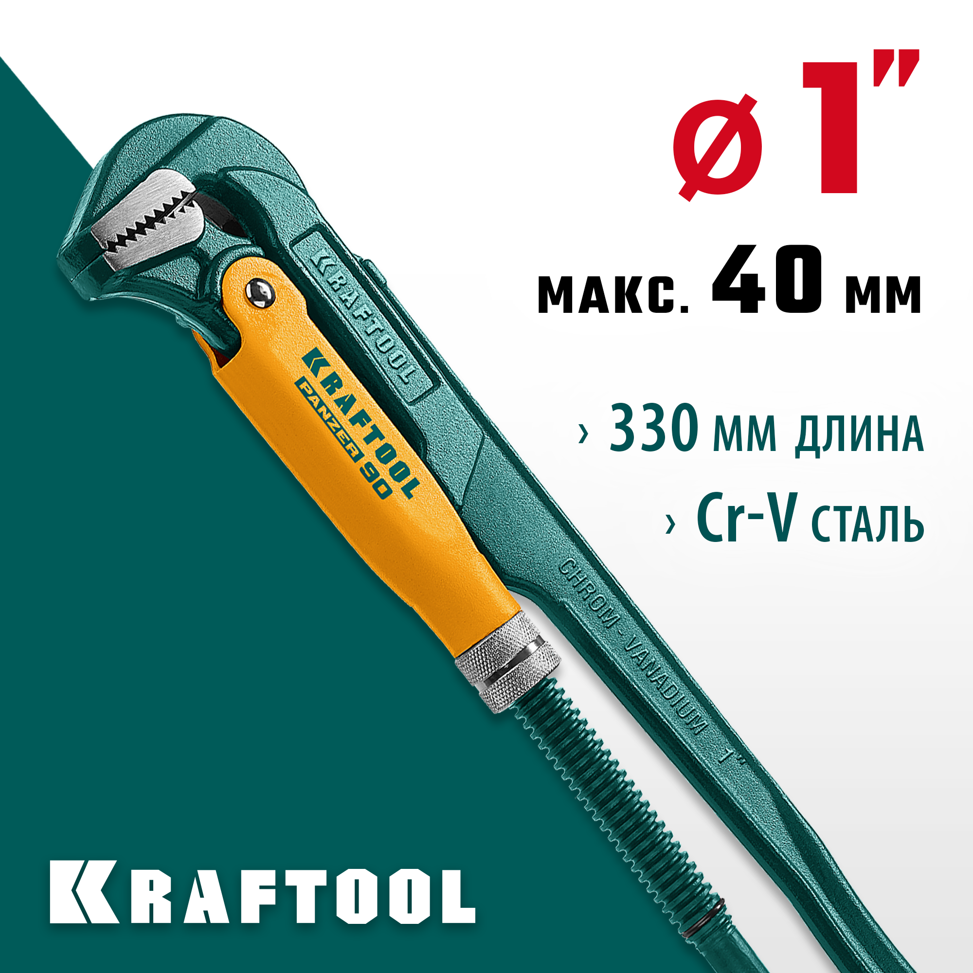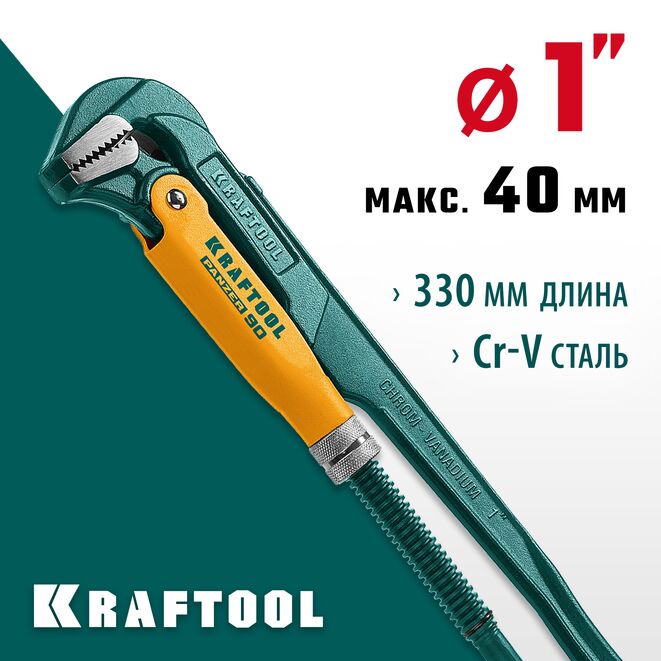 KRAFTOOL PANZER-90, №1, 1", 330 мм, трубный ключ с прямыми губками (2734-10_z02)
