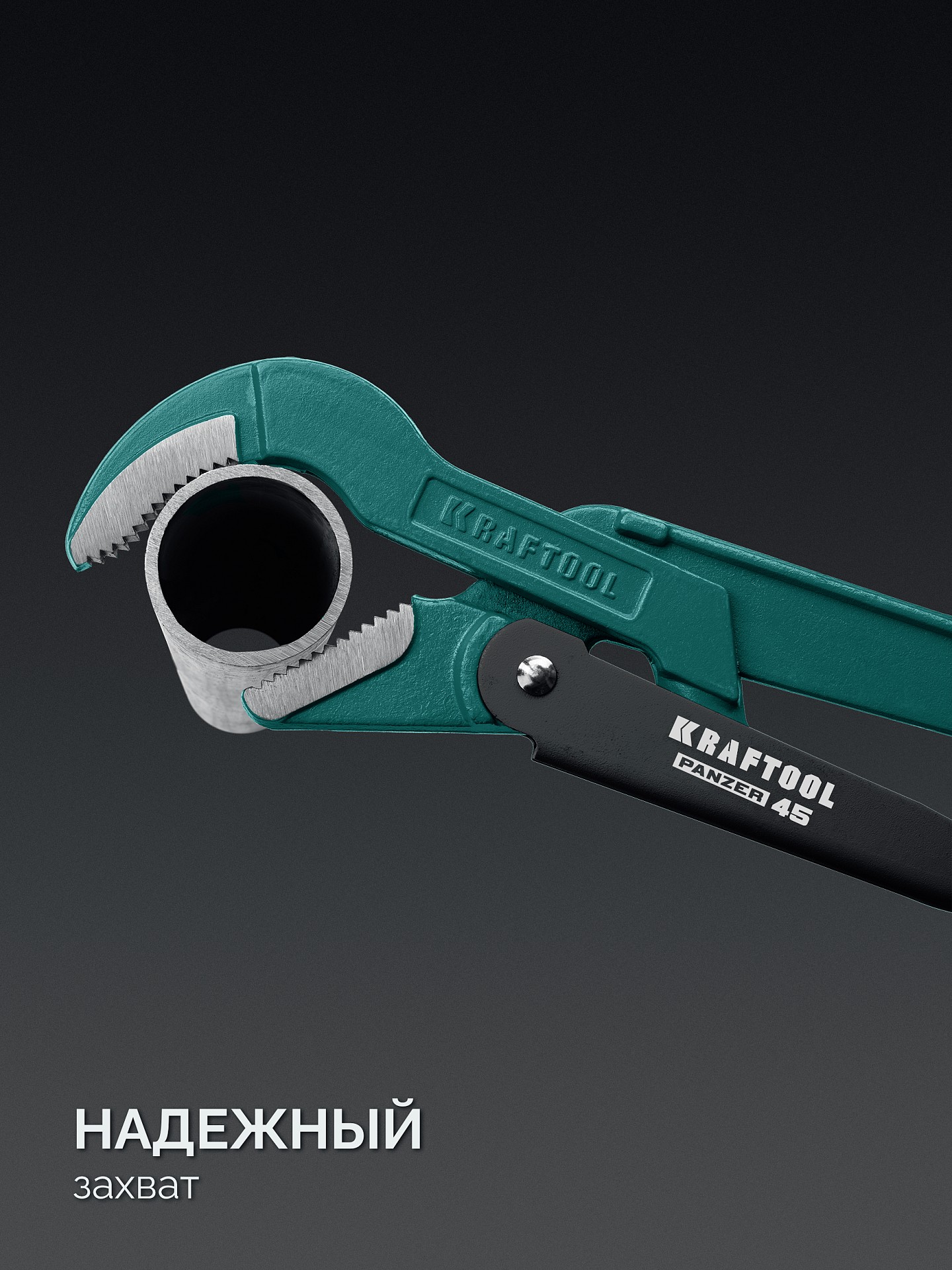 KRAFTOOL PANZER-45, №2, 1.5", 440 мм, трубный ключ с изогнутыми губками (2735-15_z02)