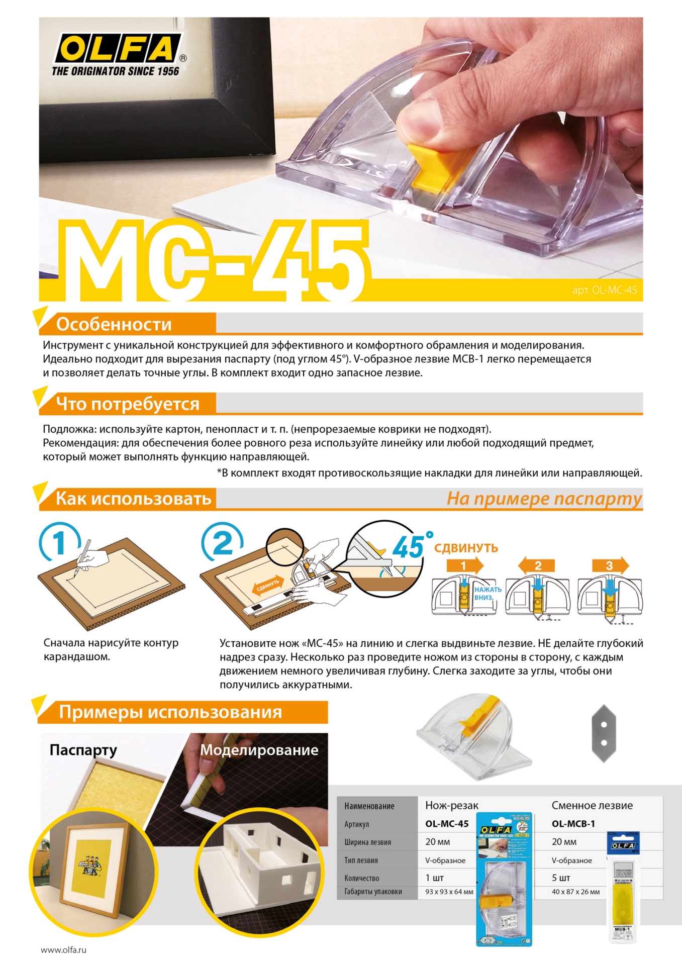 • Подходит для ножей OLFA MC-45/2B
