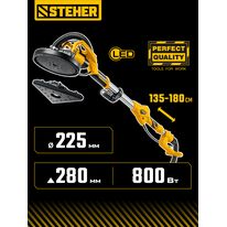 STEHER d225 мм, 800 Вт, сменные основания, подсветка, шлифовальная машина для стен (...
