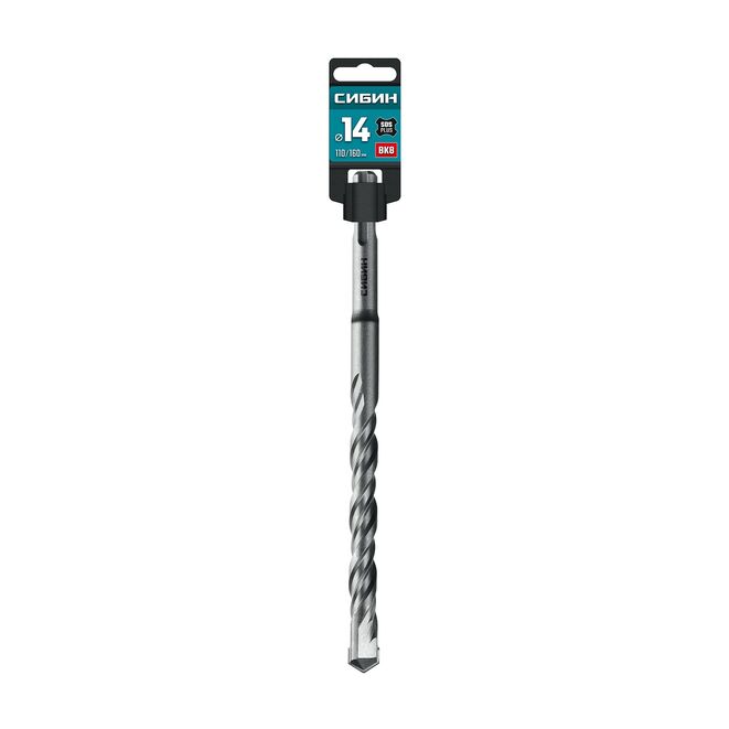 Бур SDS-plus СИБИН 29312-160-14_z01, предназначен для сверления отверстий в бетоне, граните, кирпичной кладке, камне и твердом известняке. Твердосплавная пластина ВК8. Спираль S4 с усиленным сердечником.
