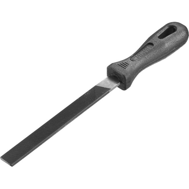 Напильник СИБИН 16701-15, предназначен для обработки поверхностей различной формы, острых кромок и выступов, а также для снятия заусенцев. Двойная насечка зубьев повышает производительность отпиливания металлических заготовок высокой твердости. Эргономичная пластиковая рукоятка обеспечивает надежный захват и комфортную работу.Характеристики СИБИН 16701-15: