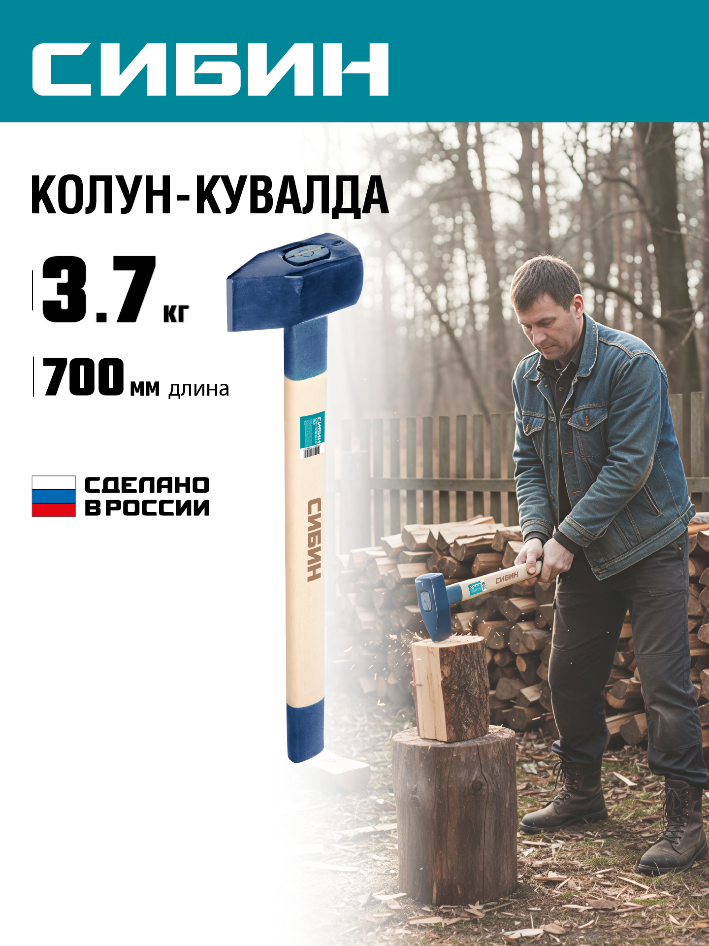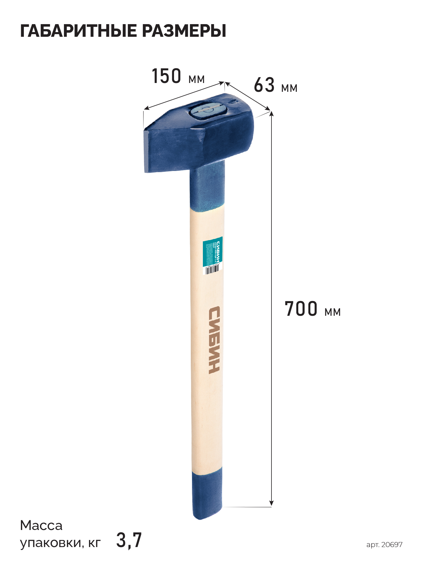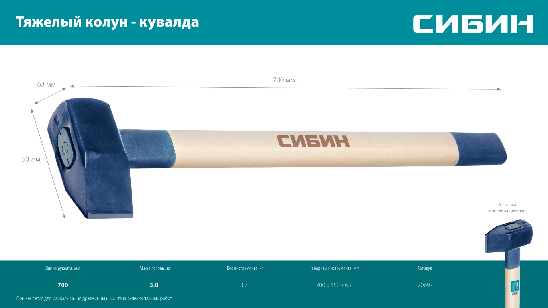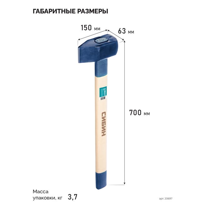 СИБИН 3000/3700 г, 700 мм тяжелый кованый, колун-кувалда (20697)