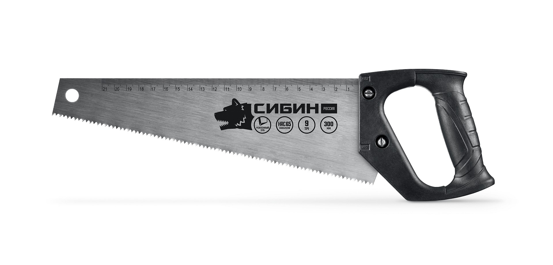- Алмазная заточка зубьев, высокочастотная закалка зубьев, полотно из высокоуглеродистой стали, двухкомпонентная рукоятка, линейка,