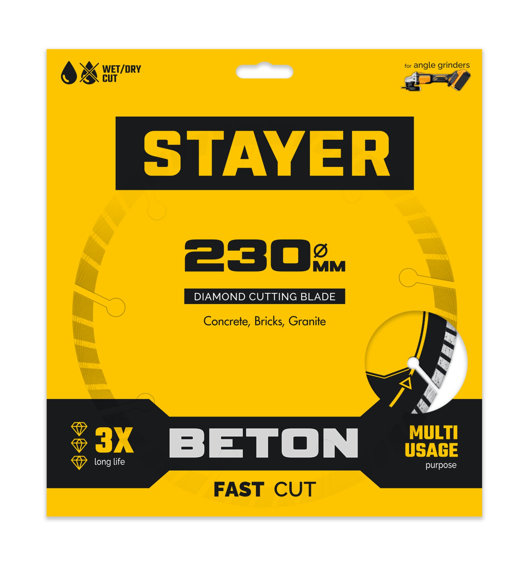 STAYER BETON, 230 мм, (22.2 мм, 7 х 2.4 мм), турбо-сегментный алмазный диск, Professional (3660-230_z02)
