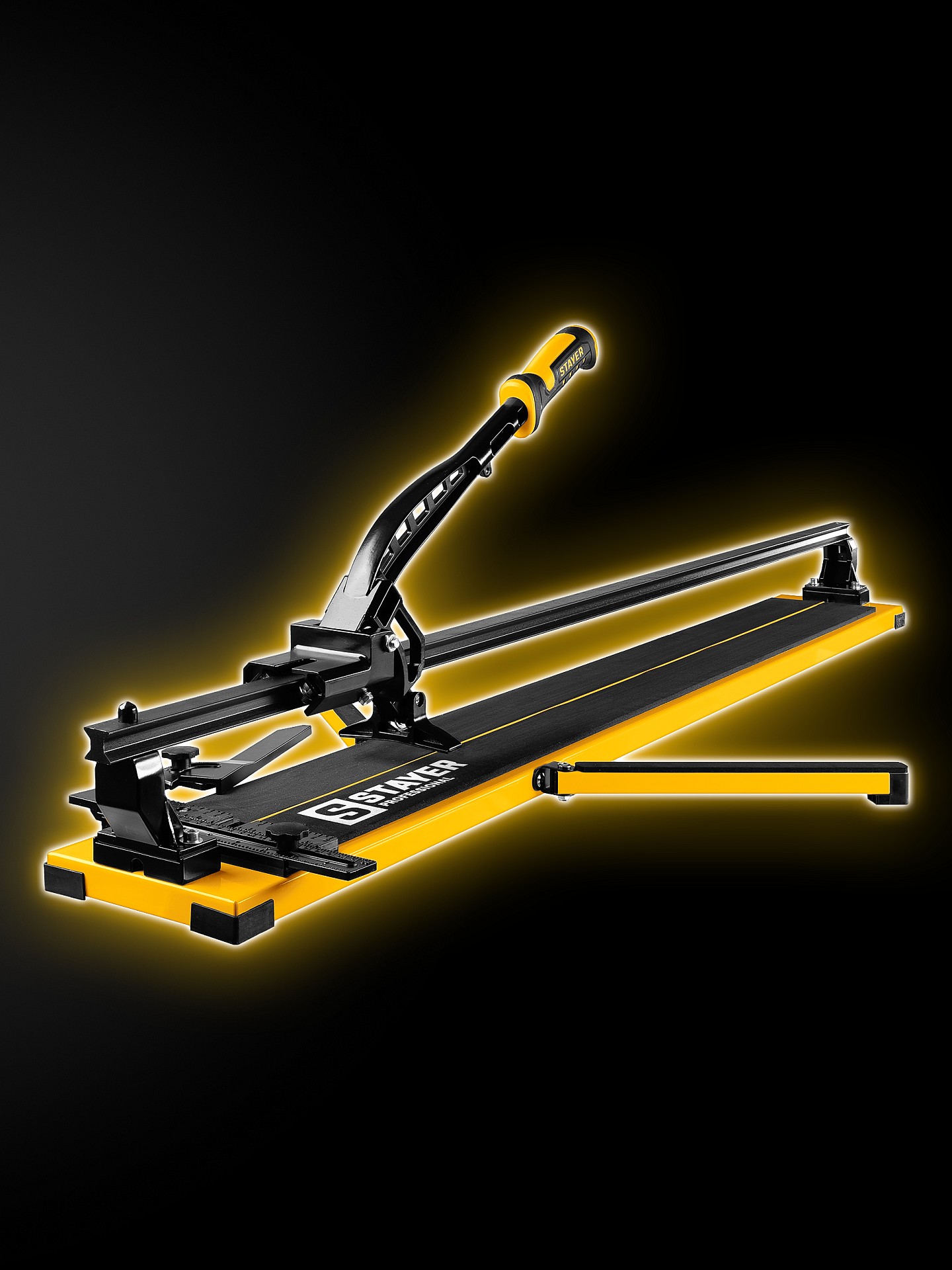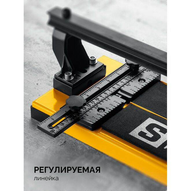 Усиленный плиткорез на монорельсе STAYER имеет самый плавный рез благодаря каретке и режущему элементу на подшипниках. Боковые опоры позволя т резать шировкую плитку.