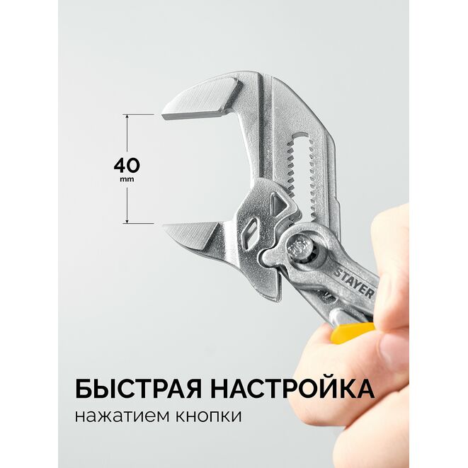 STAYER PlierWrench 180 мм, захват 40 мм, переставные клещи-гаечный ключ (22401)