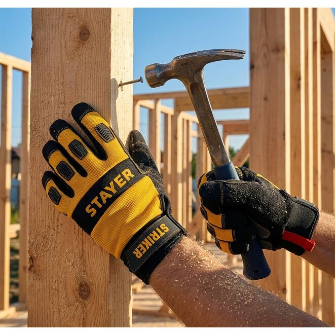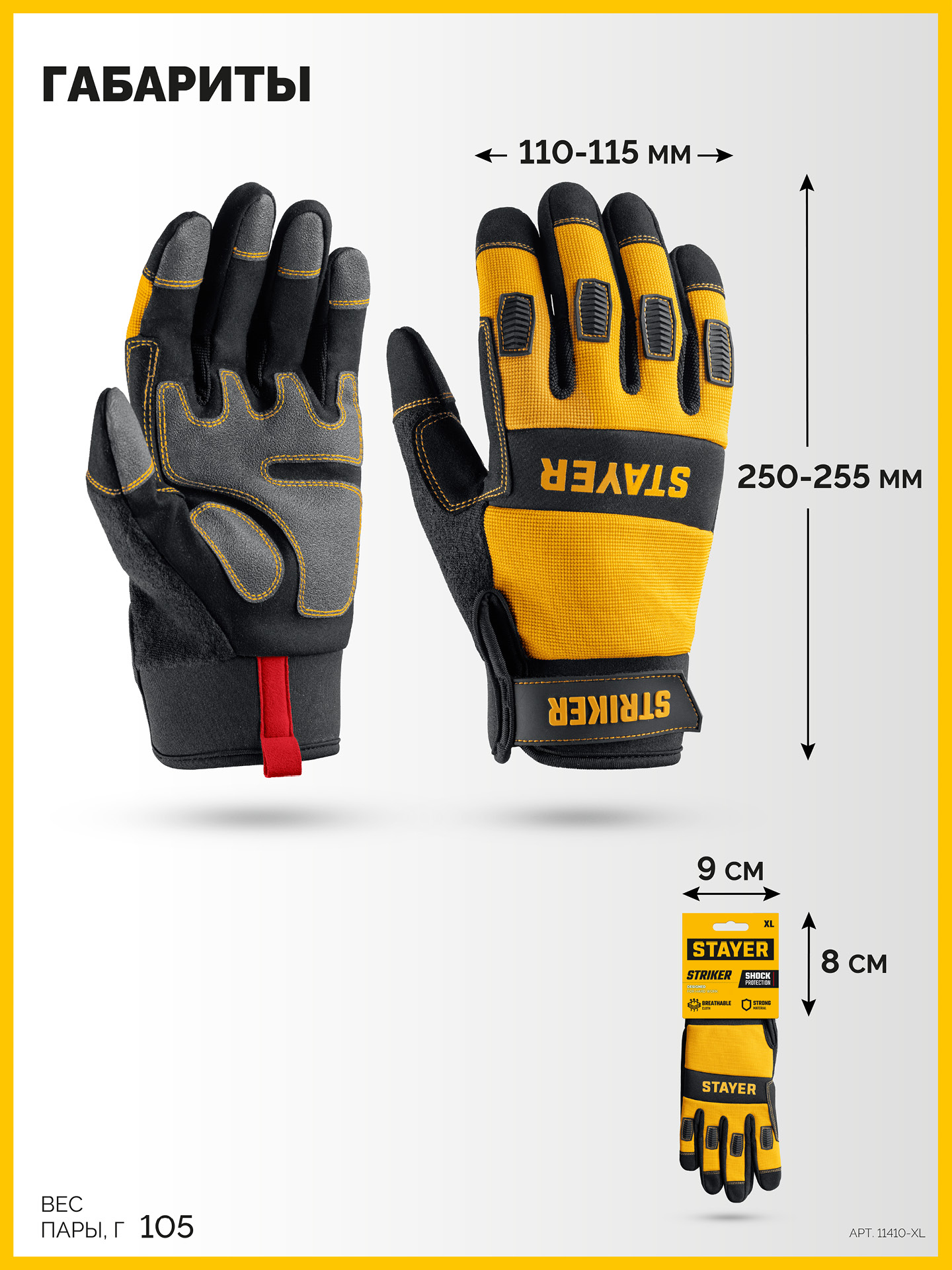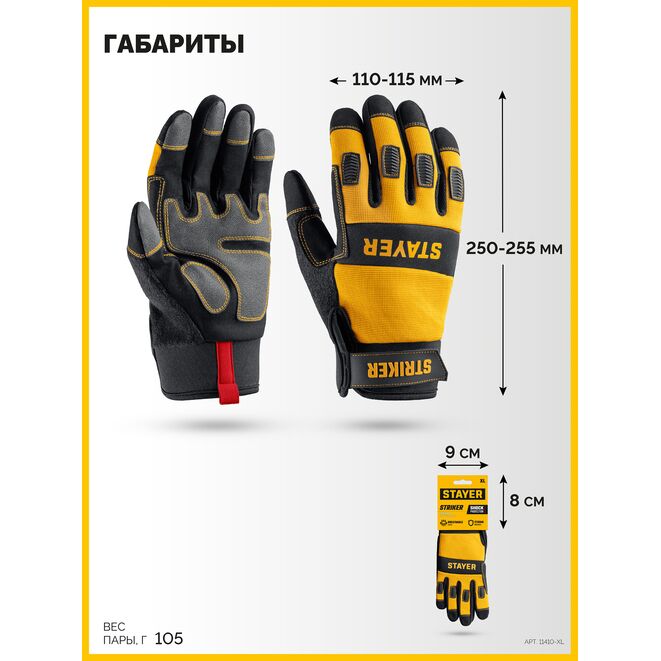 STAYER STRIKER р.XL (10), комбинированные перчатки для тяжелых механических работ (11410-XL)