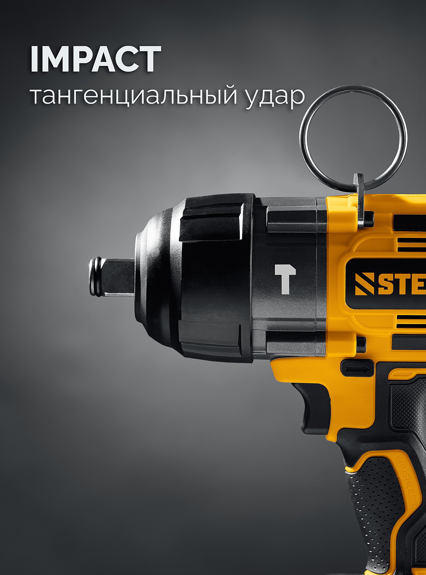 Гайковерт STEHER CWB-1000, предназначен для заворачивания/отворачивания крепежа (при сборке/разборке металлических конструкций, снятии/установке колес автомобиля и т.д.). Экономия до 70% стоимости инструмента при наличии аккумуляторов платформы. Незаменимый инструмент для крупного крепежа. Значительный крутящий момент для сложных работ. Ударная функция позволяет заворачивать крепеж большого диаметра и отворачивать приржавевшие метизы. Бесщеточный двигатель обладает целым рядом преимуществ по сравнению с обычным щеточным двигателем: высокий крутящий момент – в 2 раза выше, чем у аналогичного щеточного двигателя; высокий КПД благодаря максимально эффективному преобразованию электромагнитной энергии в механическую (ввиду отсутствия перекоммутаций). Низкое энергопотребление, вследствие чего изделие работает до 4 раз дольше на одном заряде батареию. Высокая степень защиты двигателя благодаря интеллектуальному управлению.Характеристики STEHER CWB-1000:
