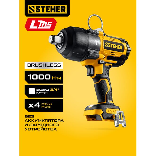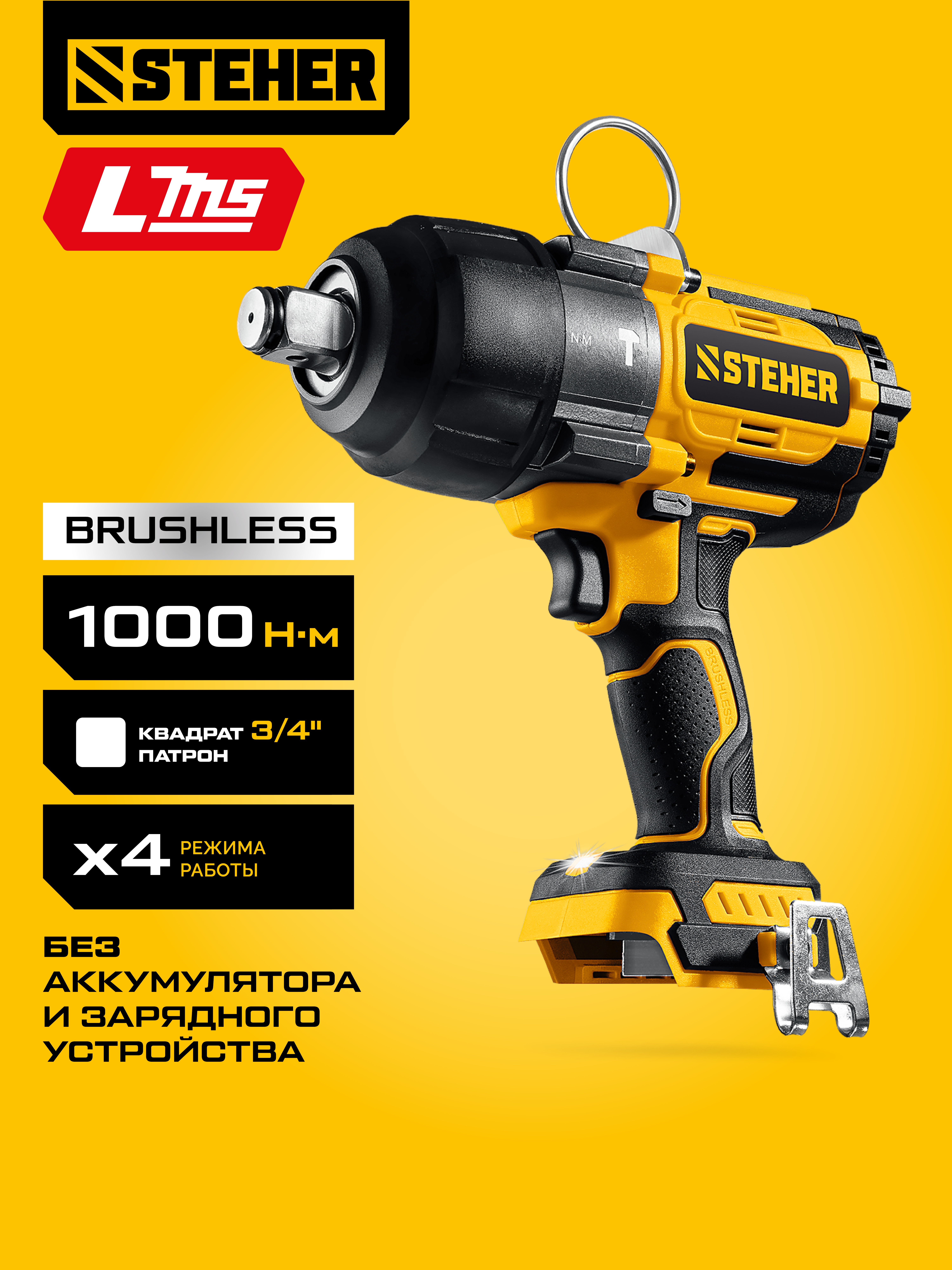 STEHER 20 В, 1000 Н·м, без АКБ (LMS), бесщеточный ударный гайковерт (CWB-1000)