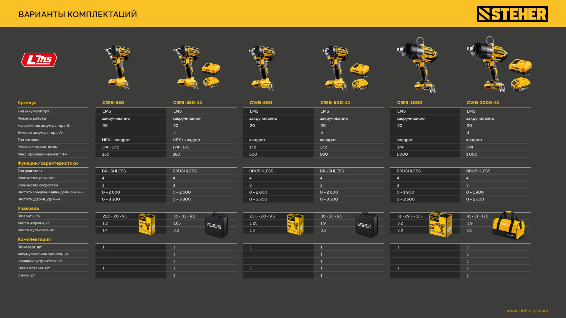 Принадлежности для STEHER  20 В, 1000 Н·м, без АКБ (LMS), бесщеточный ударный гайковерт (CWB-1000):