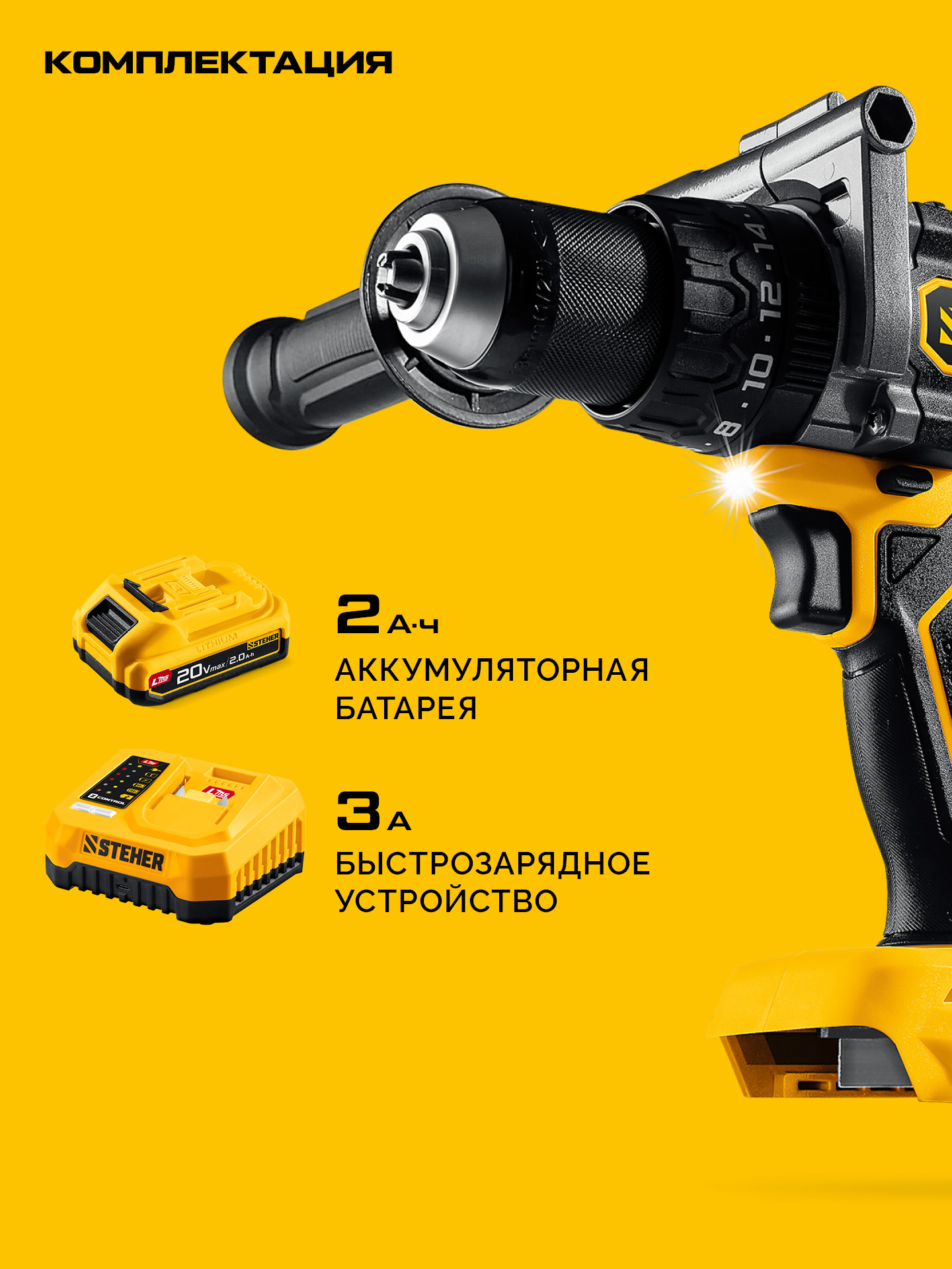 Принадлежности для STEHER 20 В, 165 Н·м, 1 АКБ LMS (2 А·ч), бесщеточная дрель-шуруповерт (CB-165-21):
