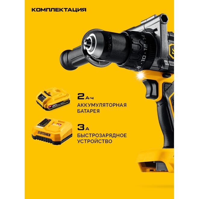 STEHER 20 В, 165 Н·м, 1 АКБ LMS (2 А·ч), бесщеточная дрель-шуруповерт (CB-165-21)