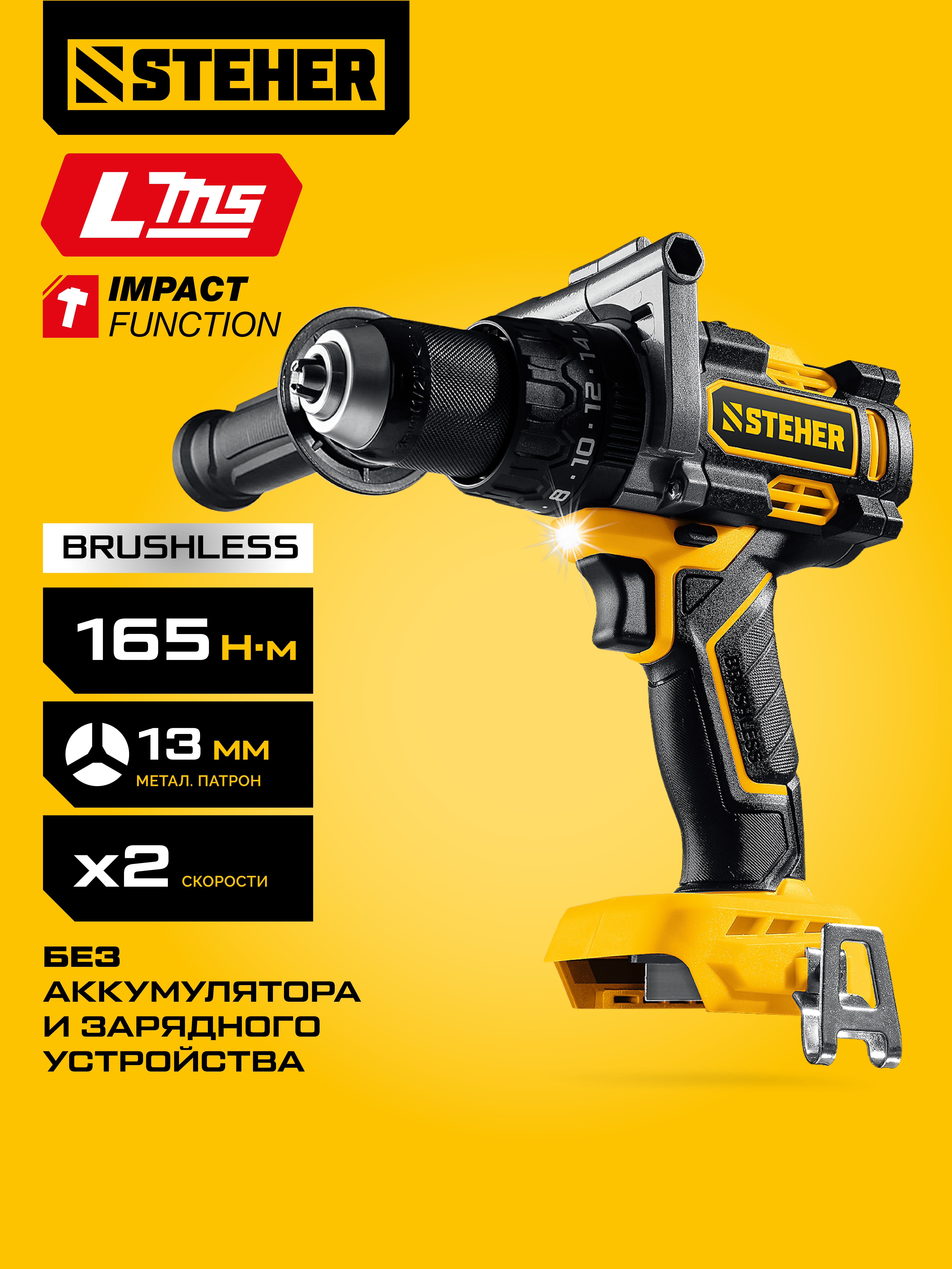 STEHER 20 В, 165 Н·м, без АКБ (LMS), бесщеточная ударная дрель-шуруповерт (CBS-165)
