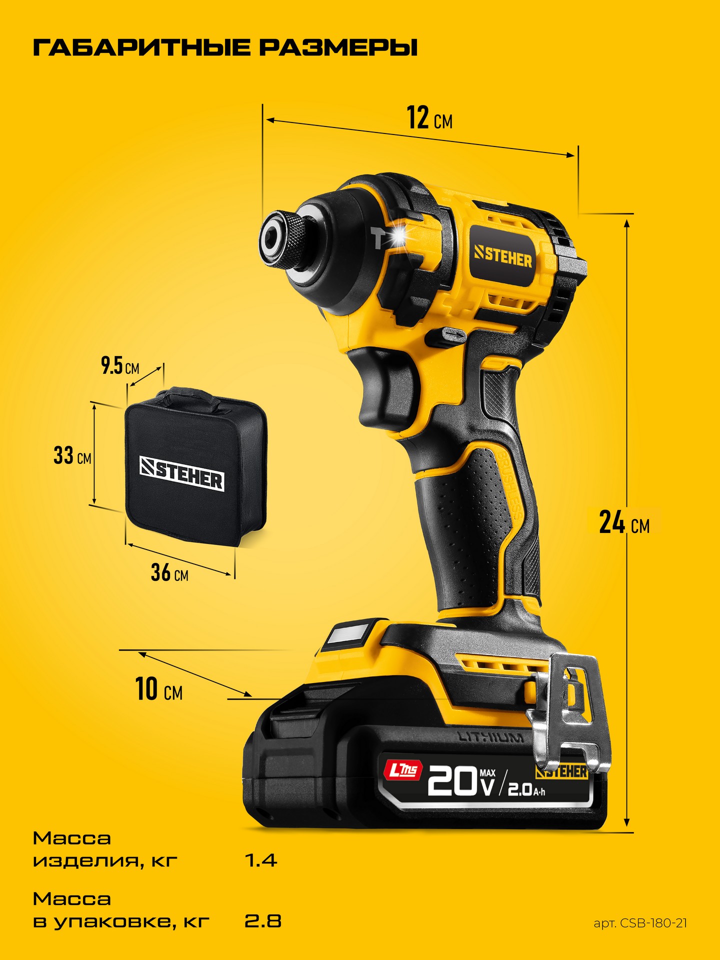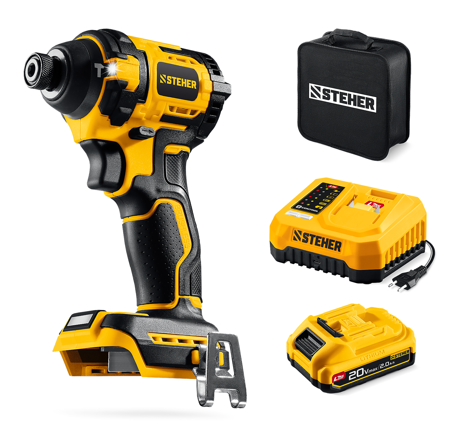Принадлежности для STEHER 20 В, 180 Н·м, 1 АКБ LMS (2 А·ч), бесщеточный ударный винтоверт, сумка (CSB-180-21):