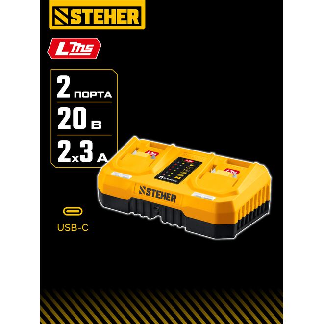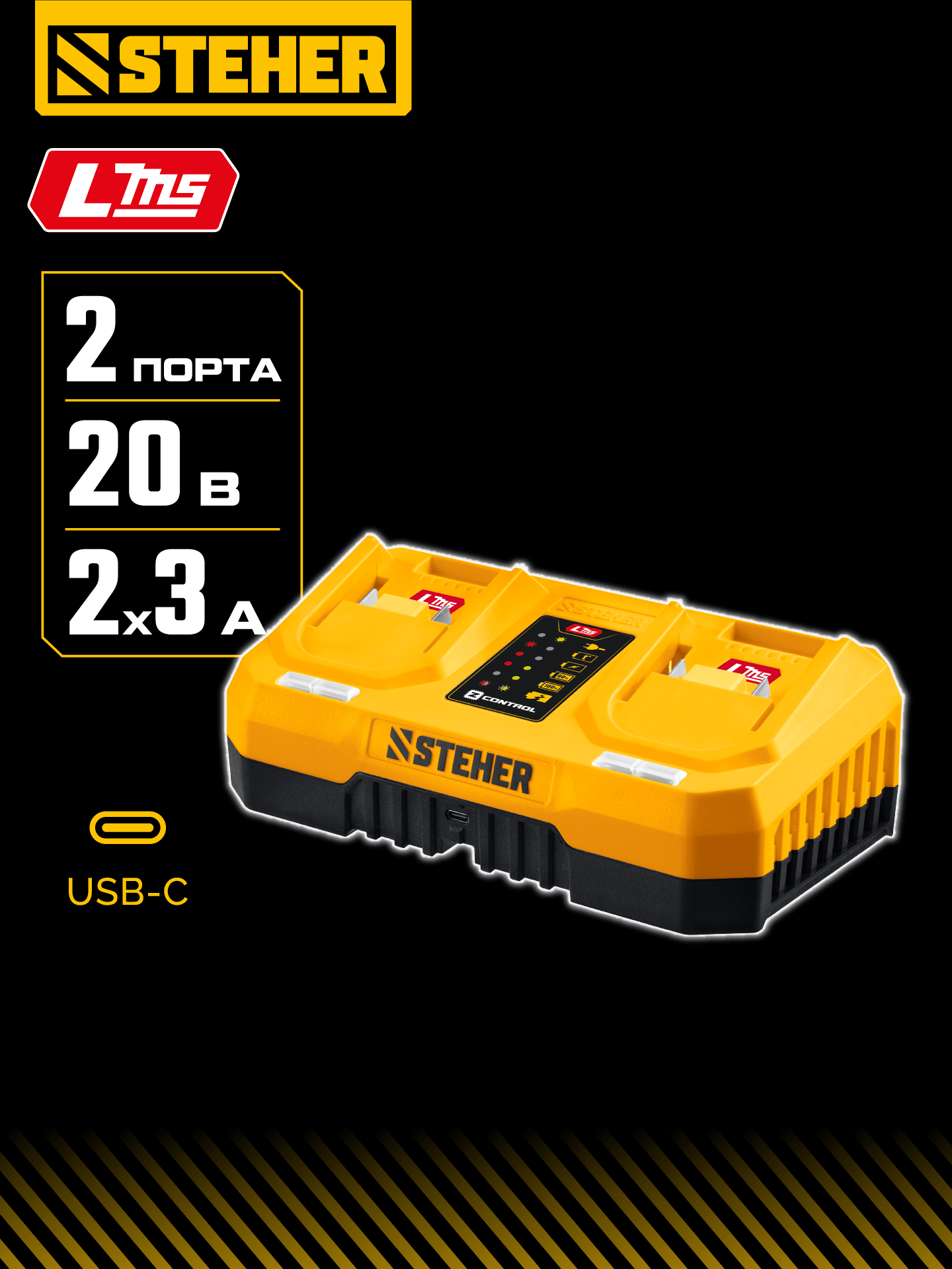 Принадлежности для STEHER 20 В, 2 порта, 2 х 3 А, зарядное устройство для LMS АКБ (CH-20-26):
