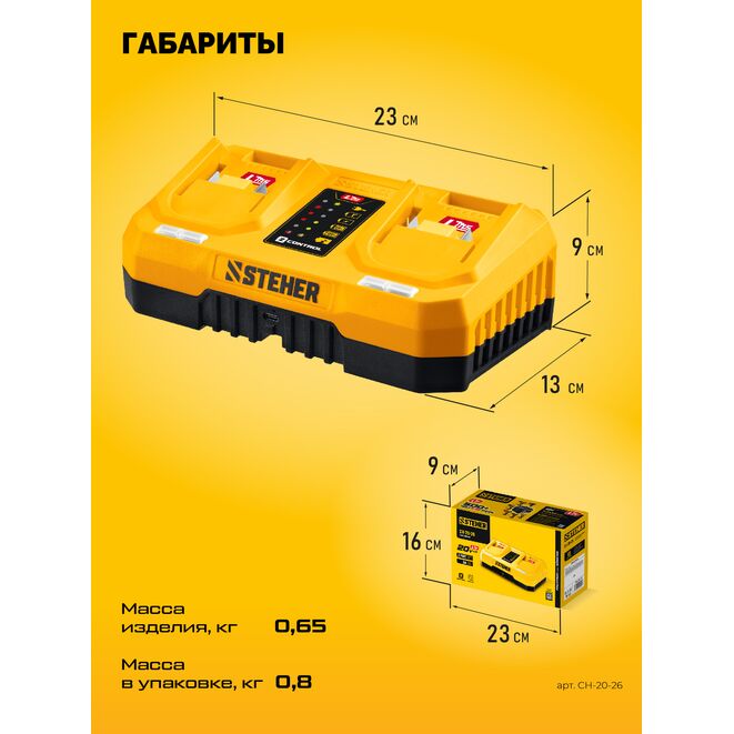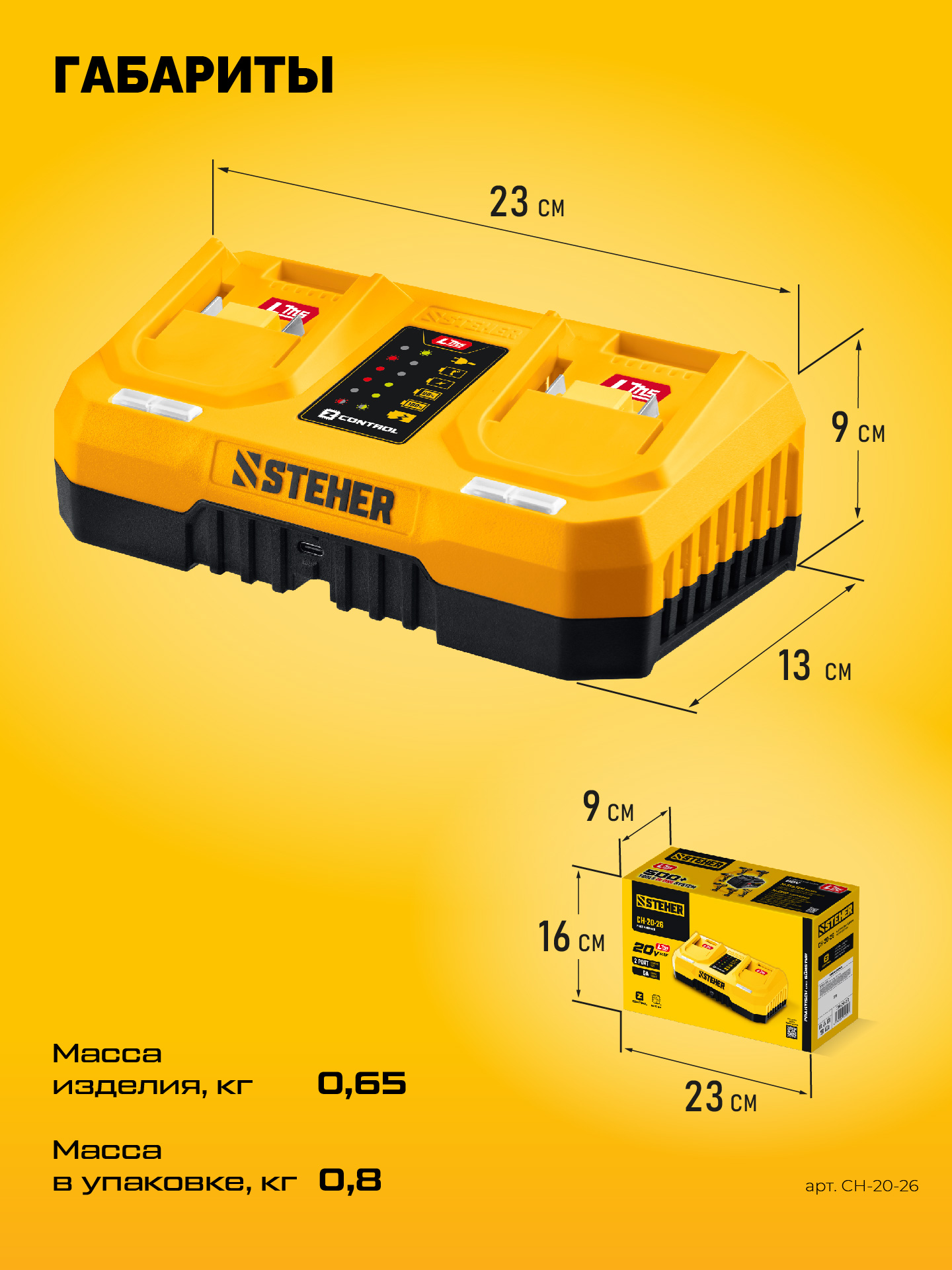 Зарядное устройство STEHER CH-20-26 предназначено для зарядки батарей аккумуляторного инструмента.