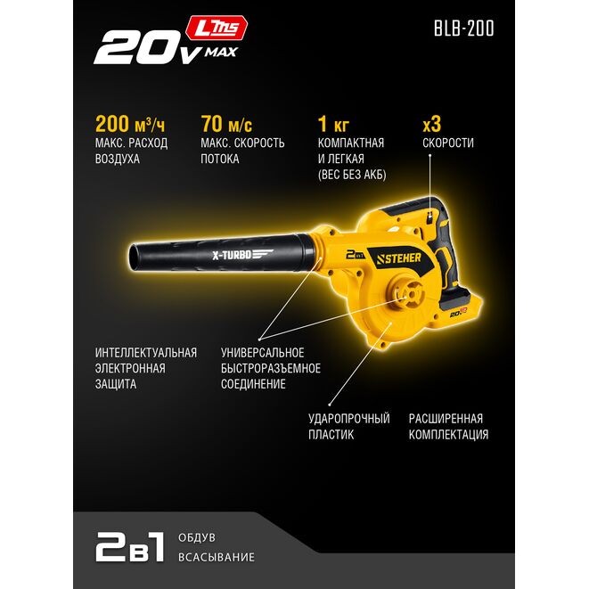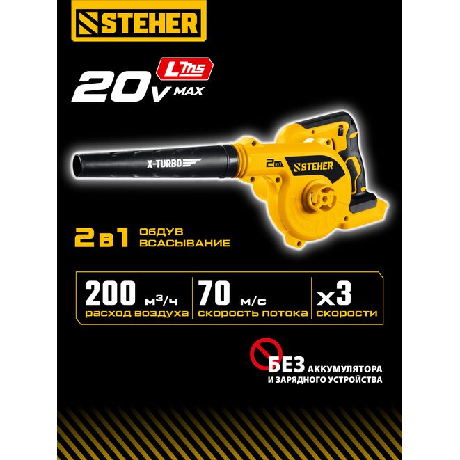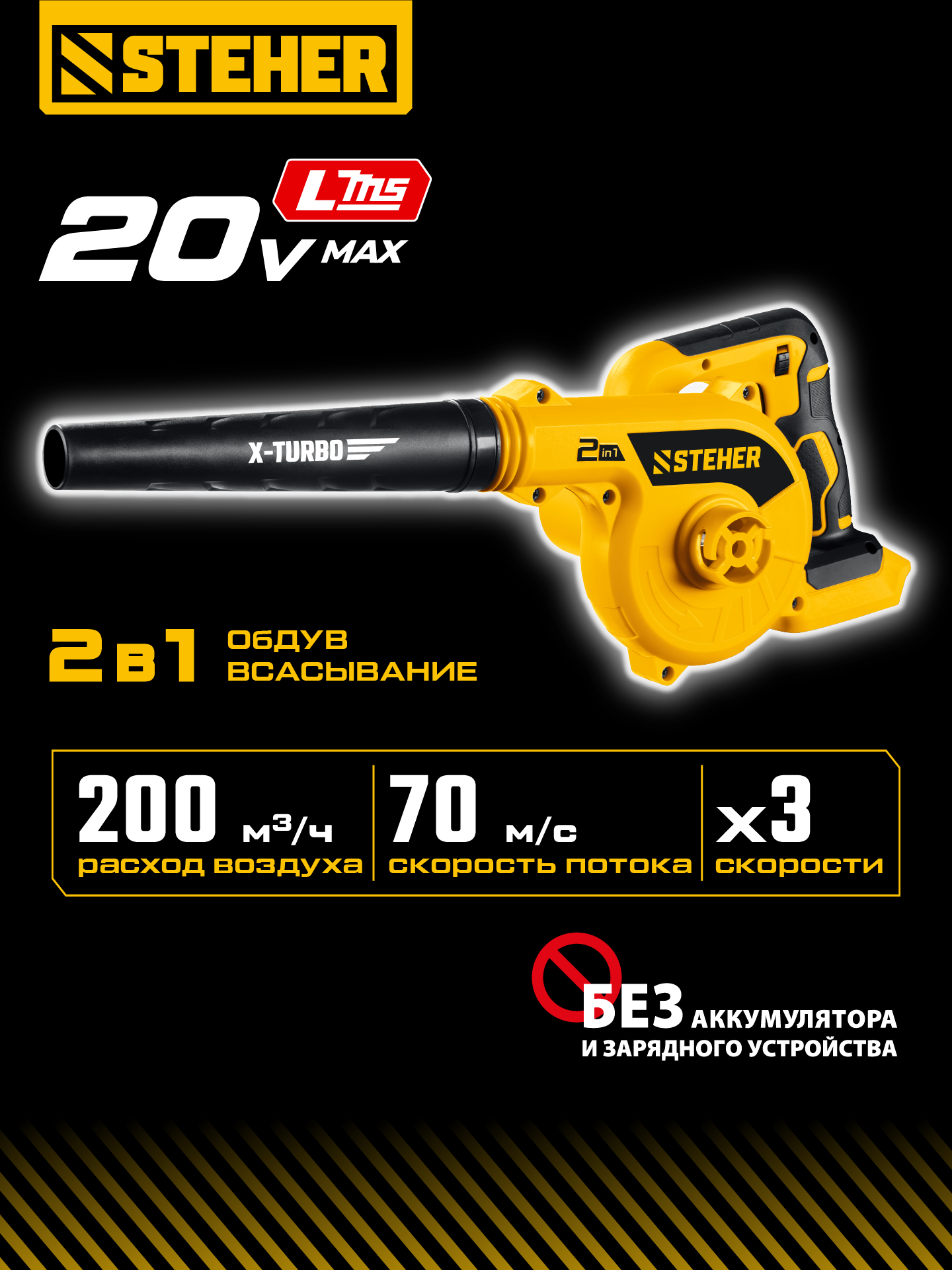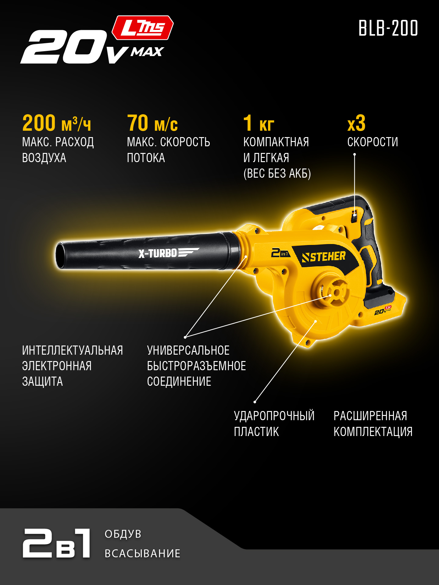 STEHER 20 В, 200 м3/ч, без АКБ (LMS), воздуходувка-пылесос аккумуляторная (BLB-200)