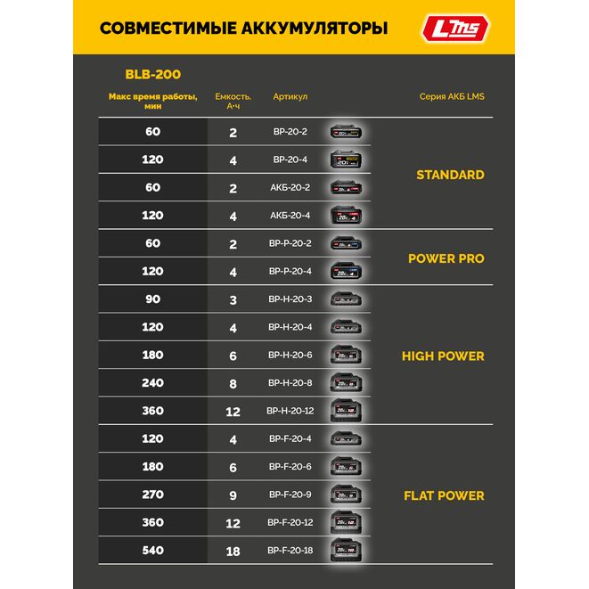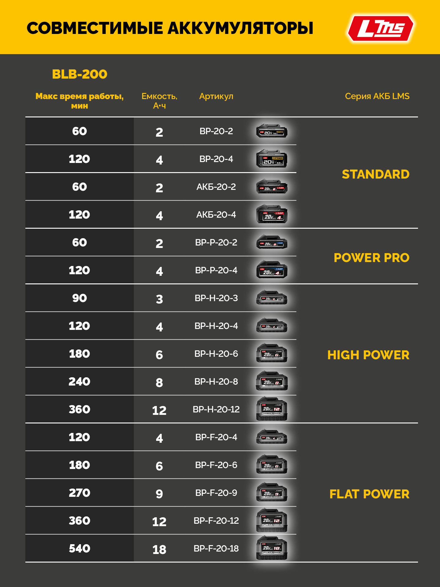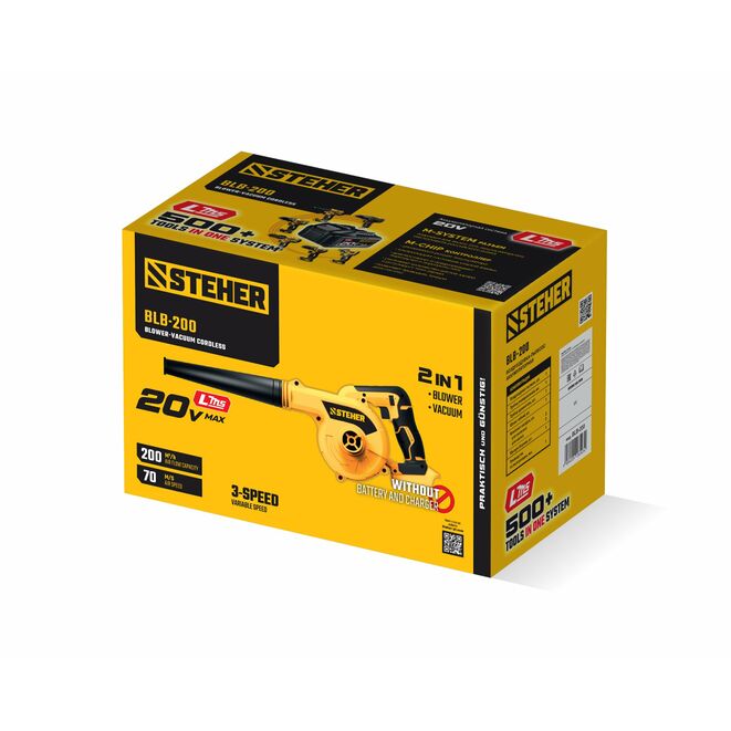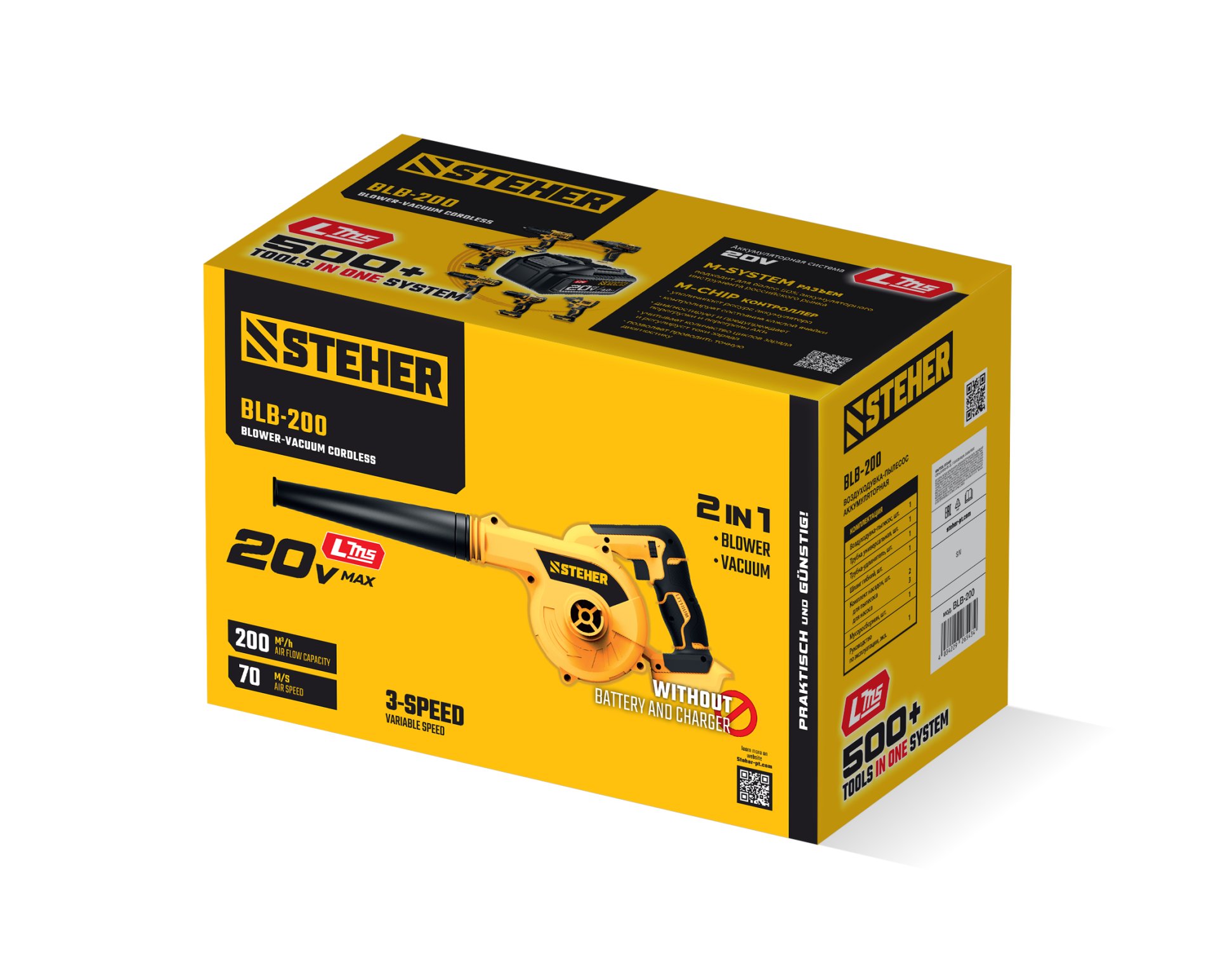 STEHER 20 В, 200 м3/ч, без АКБ (LMS), воздуходувка-пылесос аккумуляторная (BLB-200)