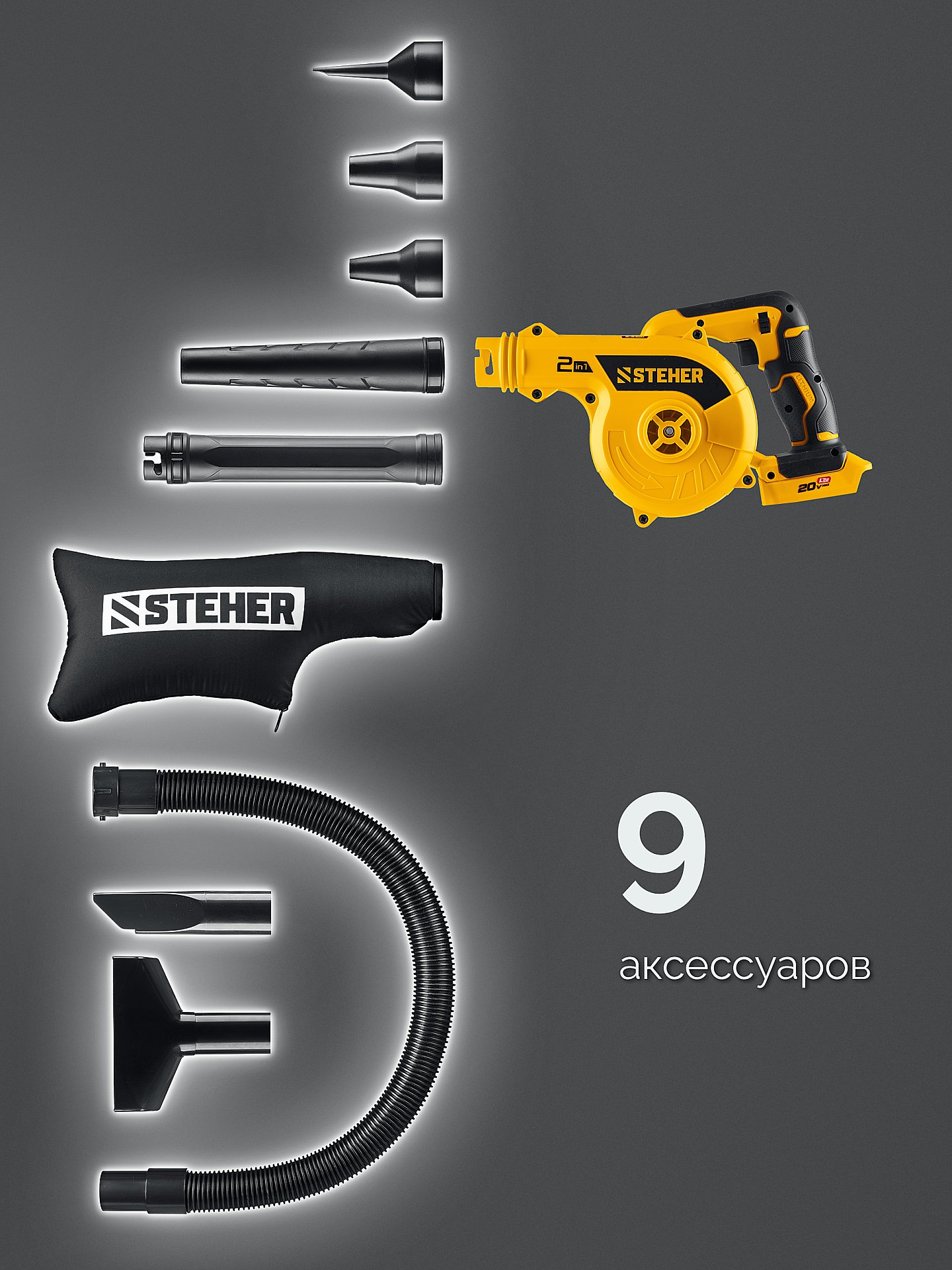 Принадлежности для STEHER 20 В, 200 м3/ч, без АКБ (LMS), воздуходувка-пылесос аккумуляторная (BLB-200):
