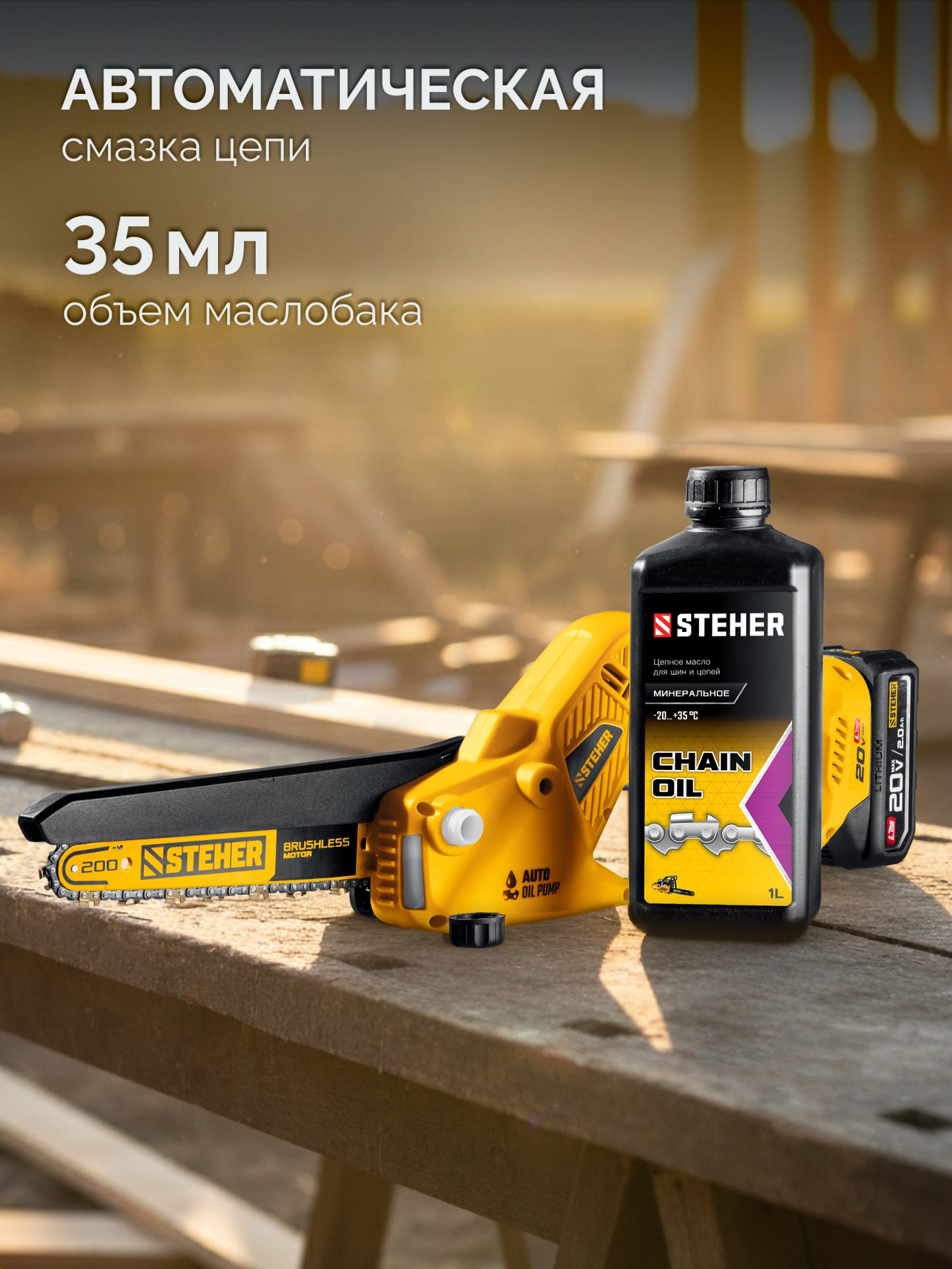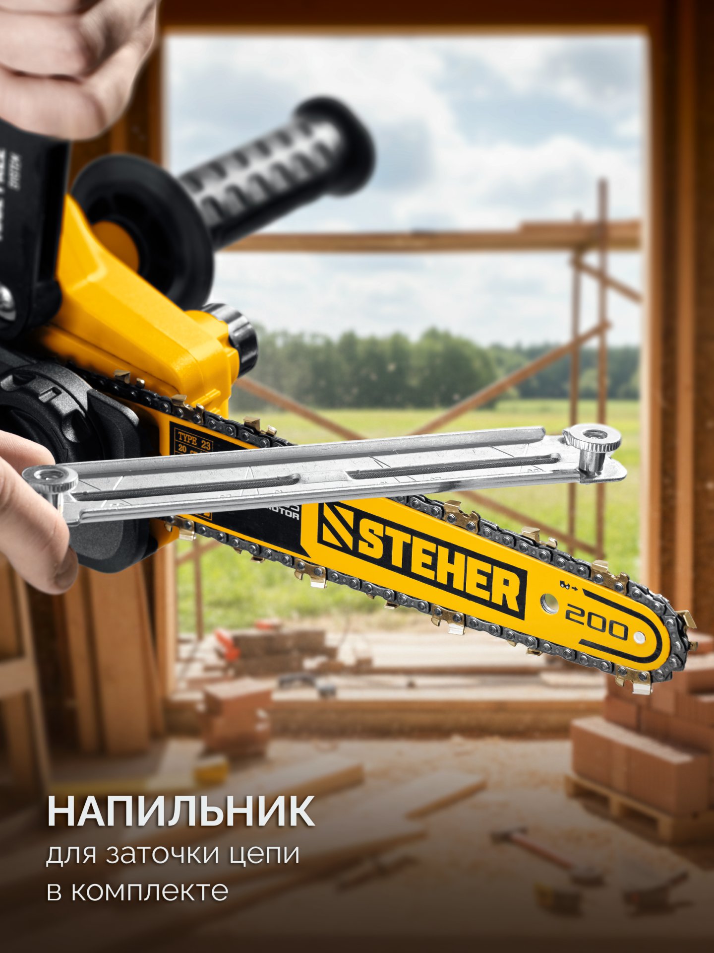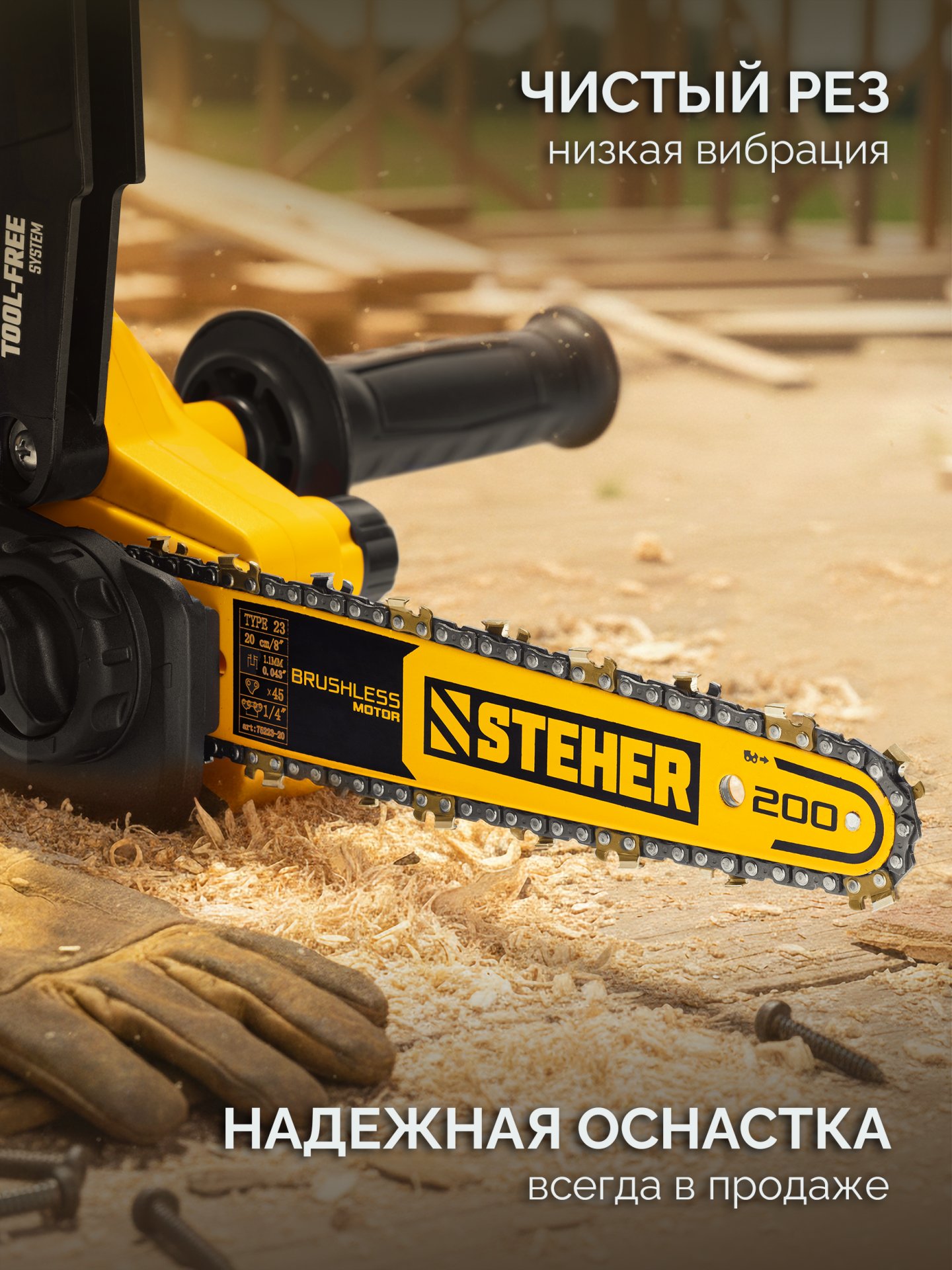 - Шина и цепь STEHER высокого качества сохраняют рабочие характеристики на протяжении всего срока службы.