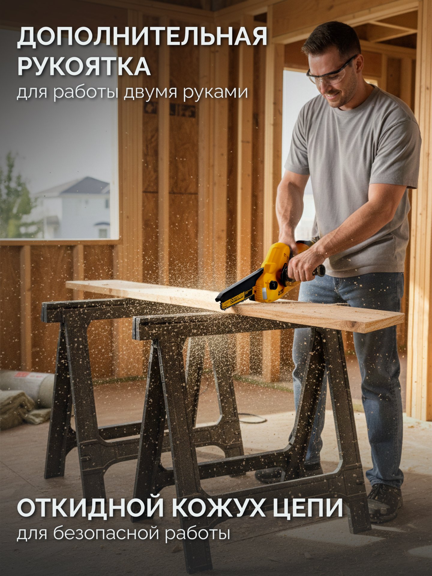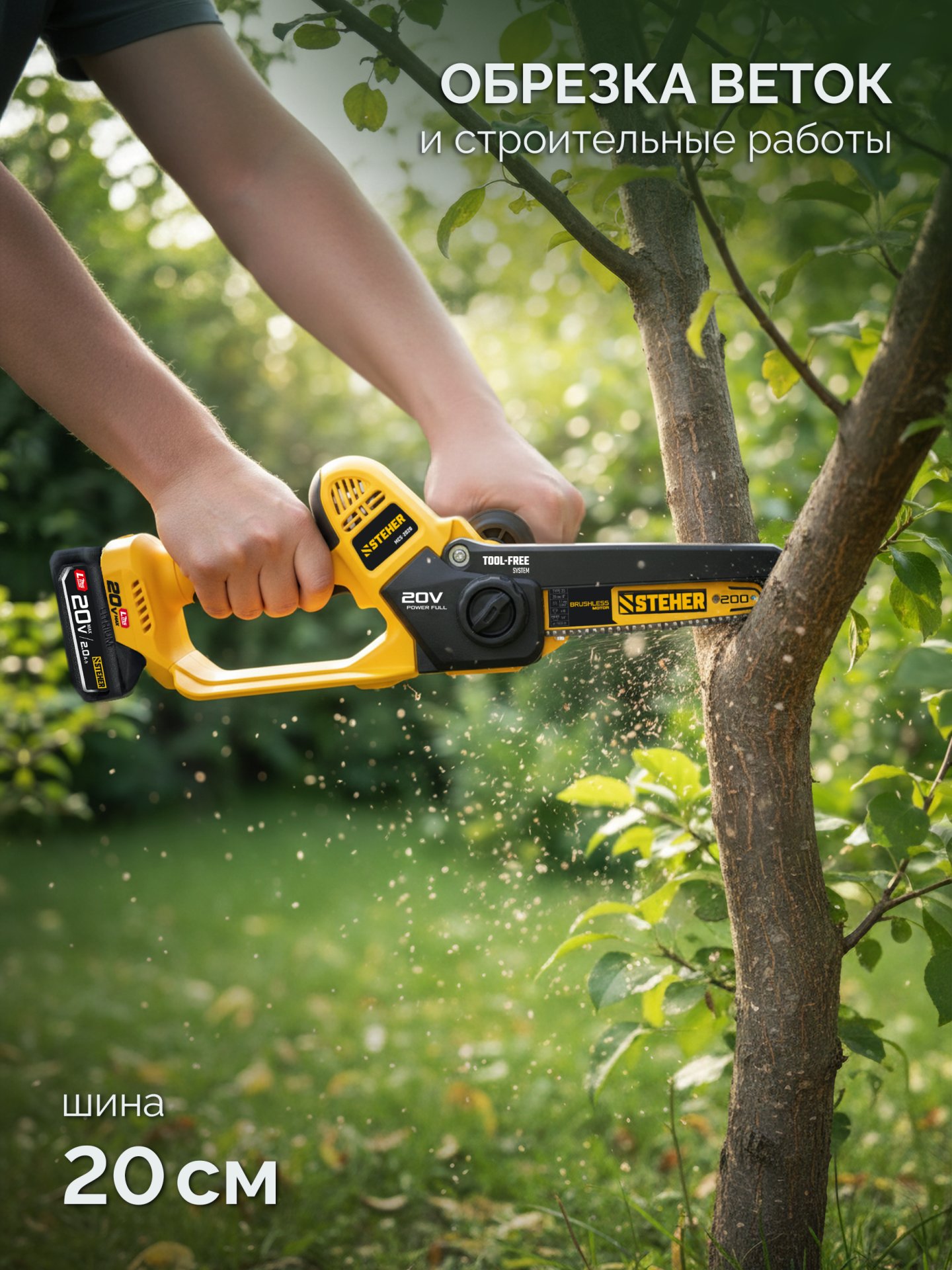 Аккумуляторная мини-пила STEHER создана для работы в саду, обрезки веток и простых строительных работ. Мощный BRUSHLESS двигатель и качественная цепь позволят быстро выполнить работуПрименение