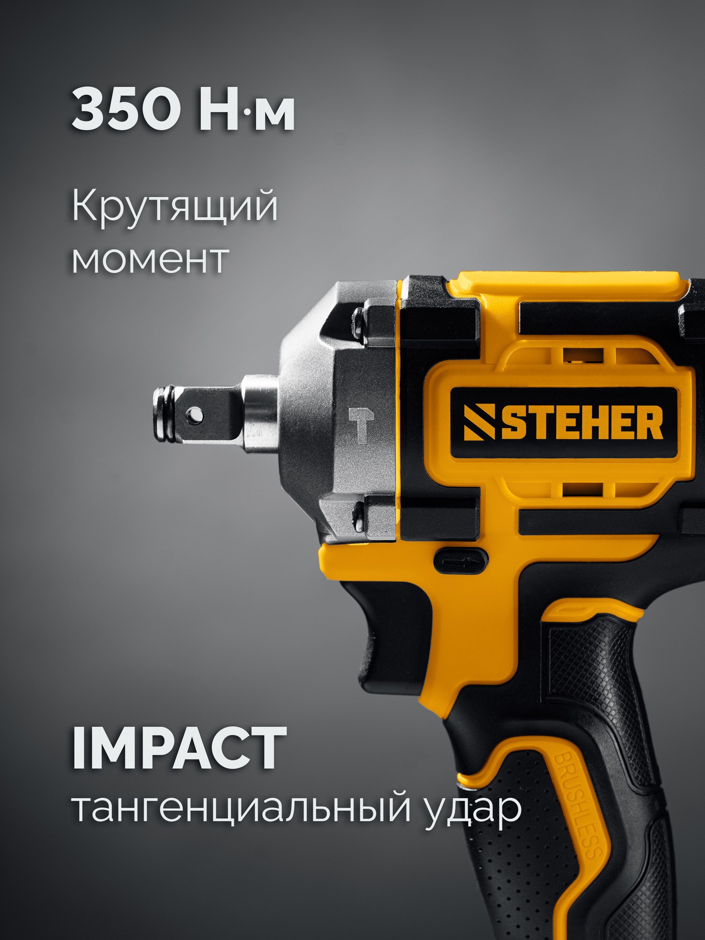 Гайковерт STEHER CWB-350-41, предназначен для заворачивания/отворачивания крепежа (при сборке/разборке металлических конструкций, снятии/установке колес автомобиля и т.д.). Экономия до 70% стоимости инструмента при наличии аккумуляторов платформы. Незаменимый инструмент для крупного крепежа. Значительный крутящий момент для сложных работ. Ударная функция позволяет заворачивать крепеж большого диаметра и отворачивать приржавевшие метизы. Бесщеточный двигатель обладает целым рядом преимуществ по сравнению с обычным щеточным двигателем: высокий крутящий момент – в 2 раза выше, чем у аналогичного щеточного двигателя; высокий КПД благодаря максимально эффективному преобразованию электромагнитной энергии в механическую (ввиду отсутствия перекоммутаций). Низкое энергопотребление, вследствие чего изделие работает до 4 раз дольше на одном заряде батареию. Высокая степень защиты двигателя благодаря интеллектуальному управлению.Характеристики STEHER CWB-350-41: