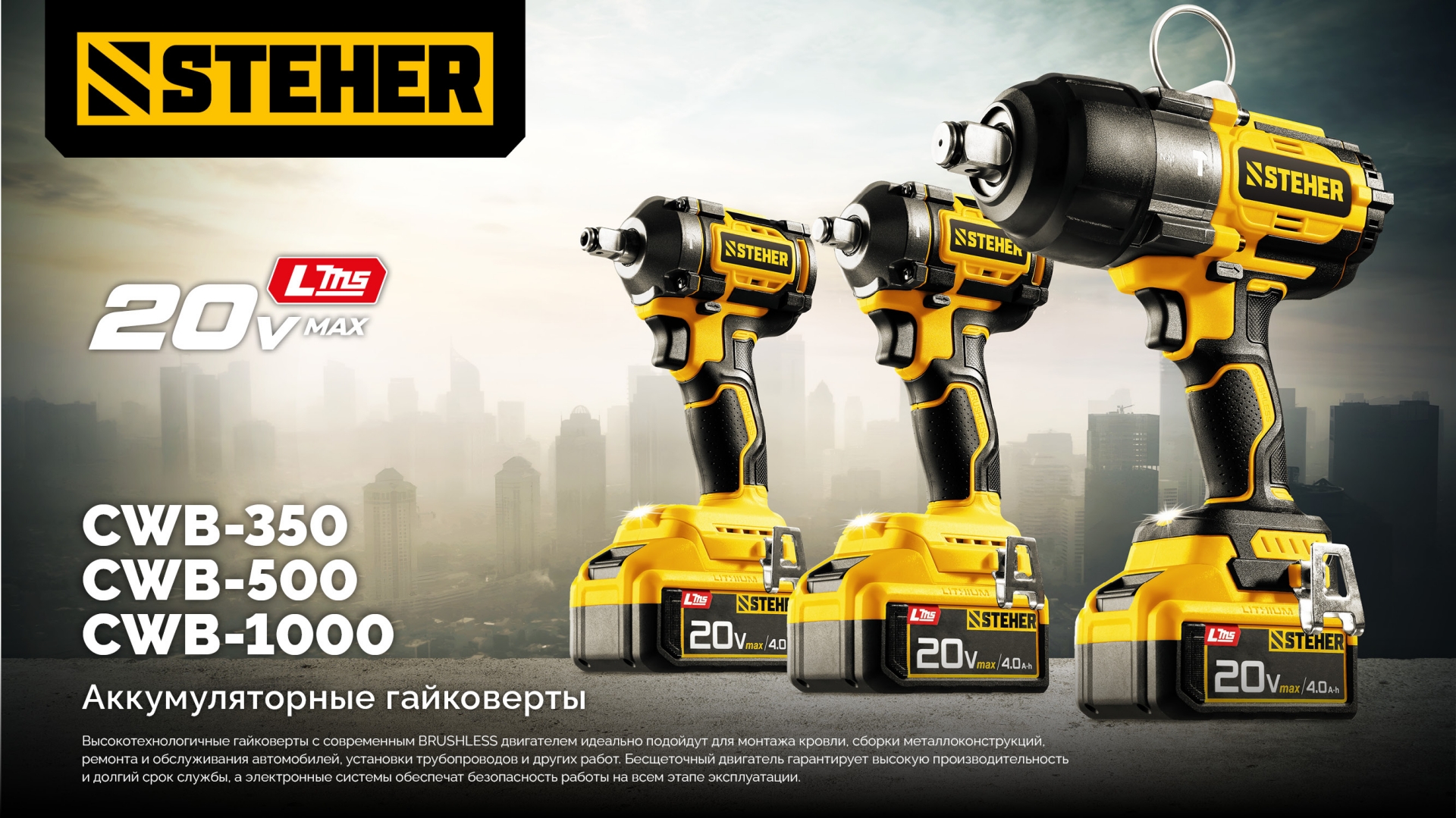 STEHER 20 В, 350 Н·м, без АКБ (LMS), бесщеточный ударный гайковерт (CWB-350)