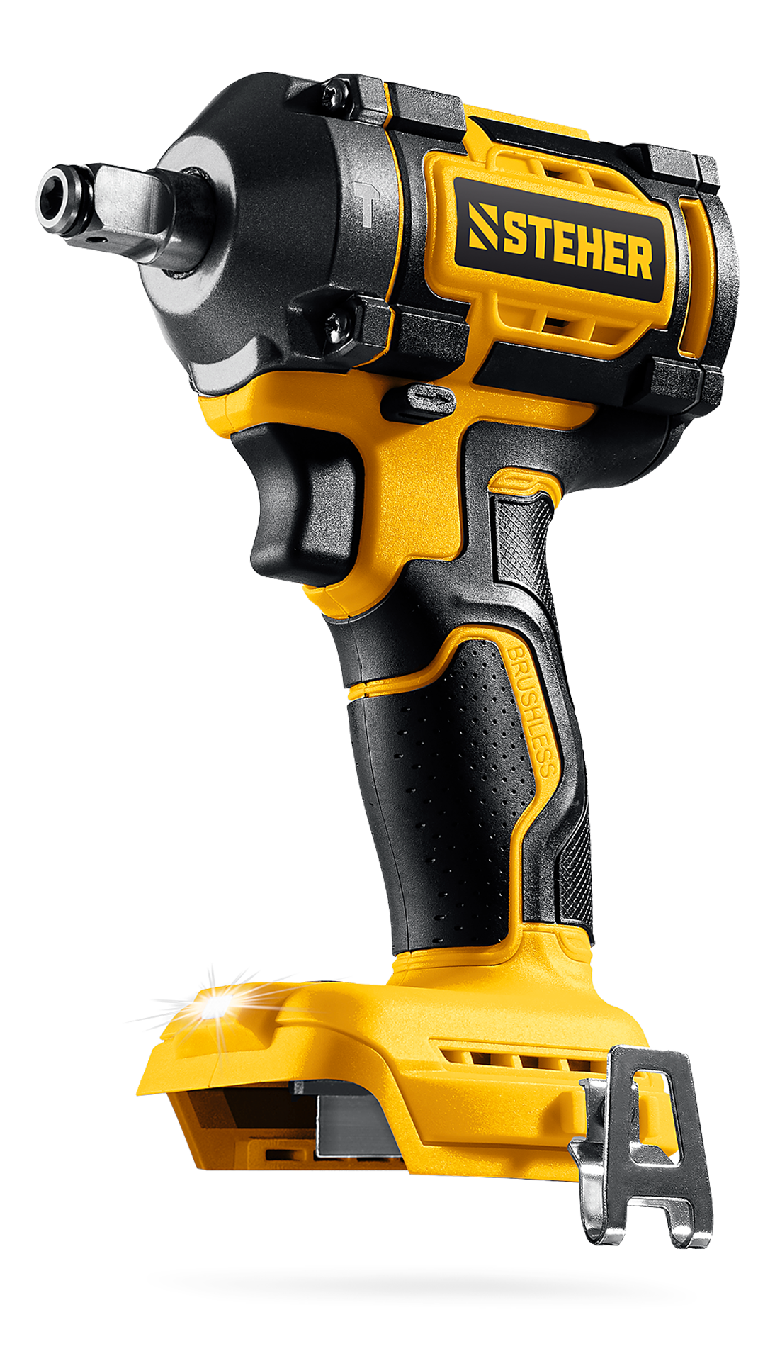 Бесщеточный ударный гайковерт Steher с BRUSHLESS двигателем и максимальным крутящим моментом 350 Н∙м предназначен для фиксации резьбовых соединений размером до М18. Ударная функция с эффективным направлением удара обеспечивает легкое заворачивание без лишней нагрузки на кисть оператора. Модель без АКБ и БЗУ позволяет сэкономить на покупке при наличии батарей системы LMS
