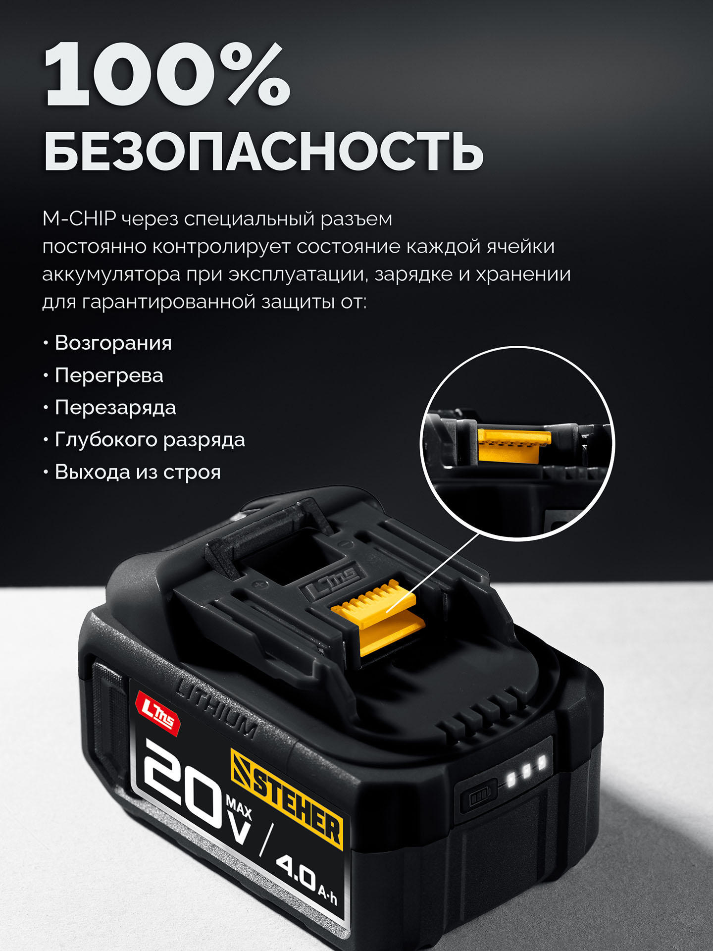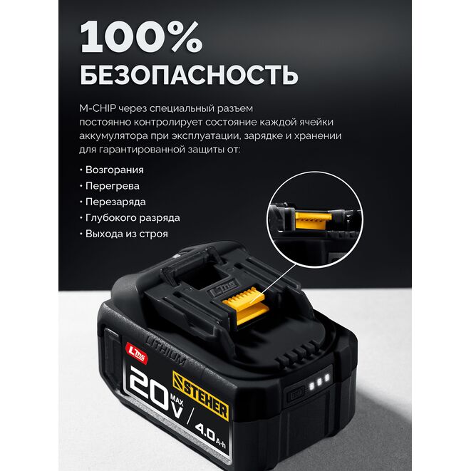 STEHER 20 В, 4.0 А·ч, аккумулятор LMS (BP-20-4)
