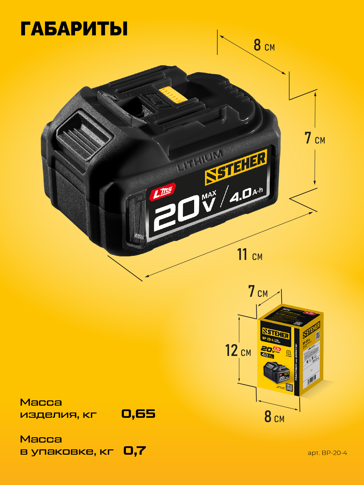 Принадлежности для STEHER 20 В, 4.0 А·ч, аккумулятор LMS (BP-20-4):