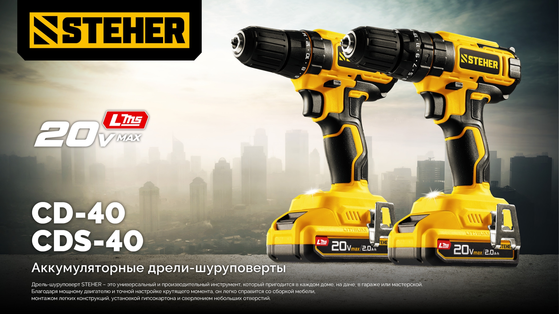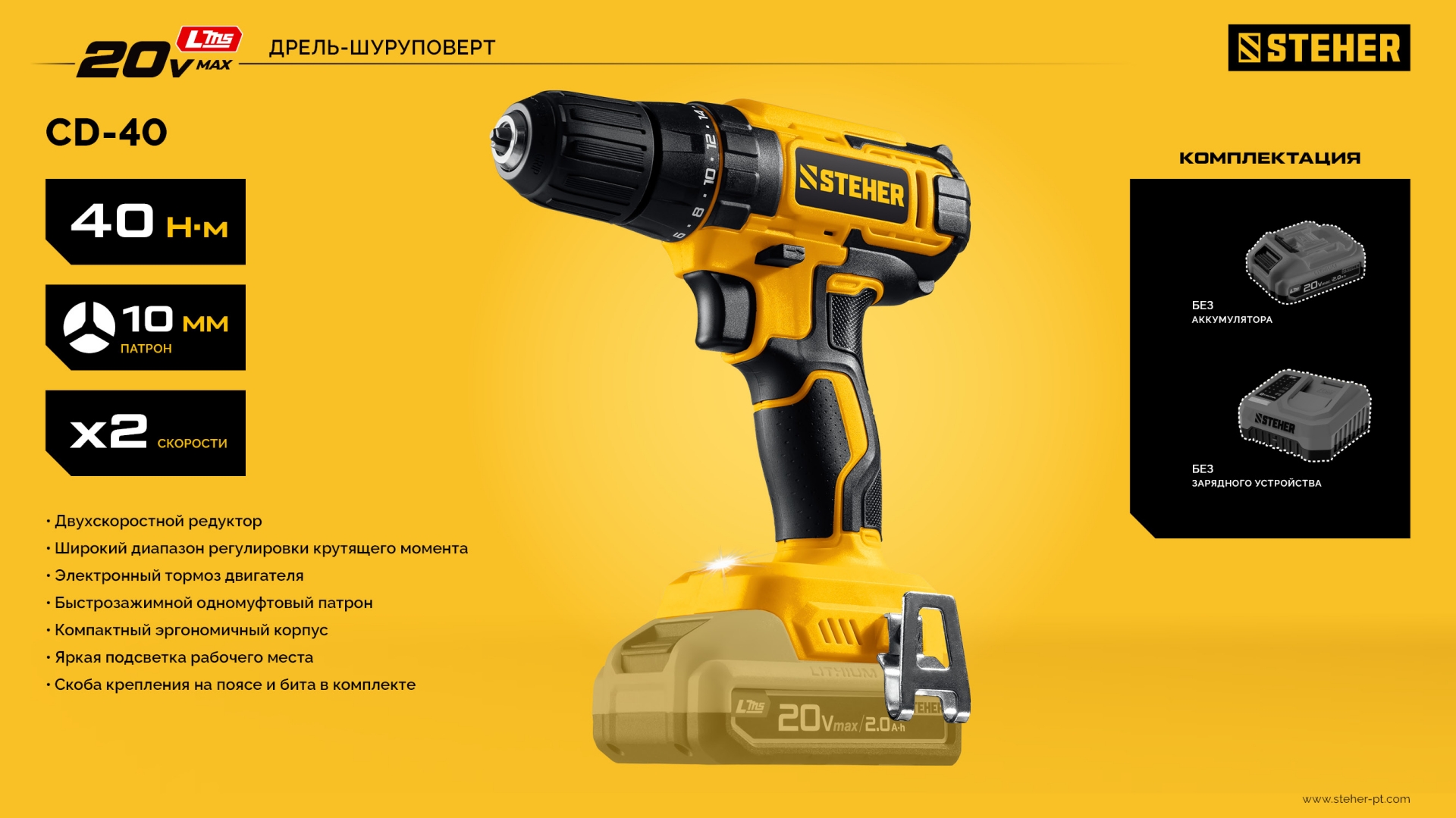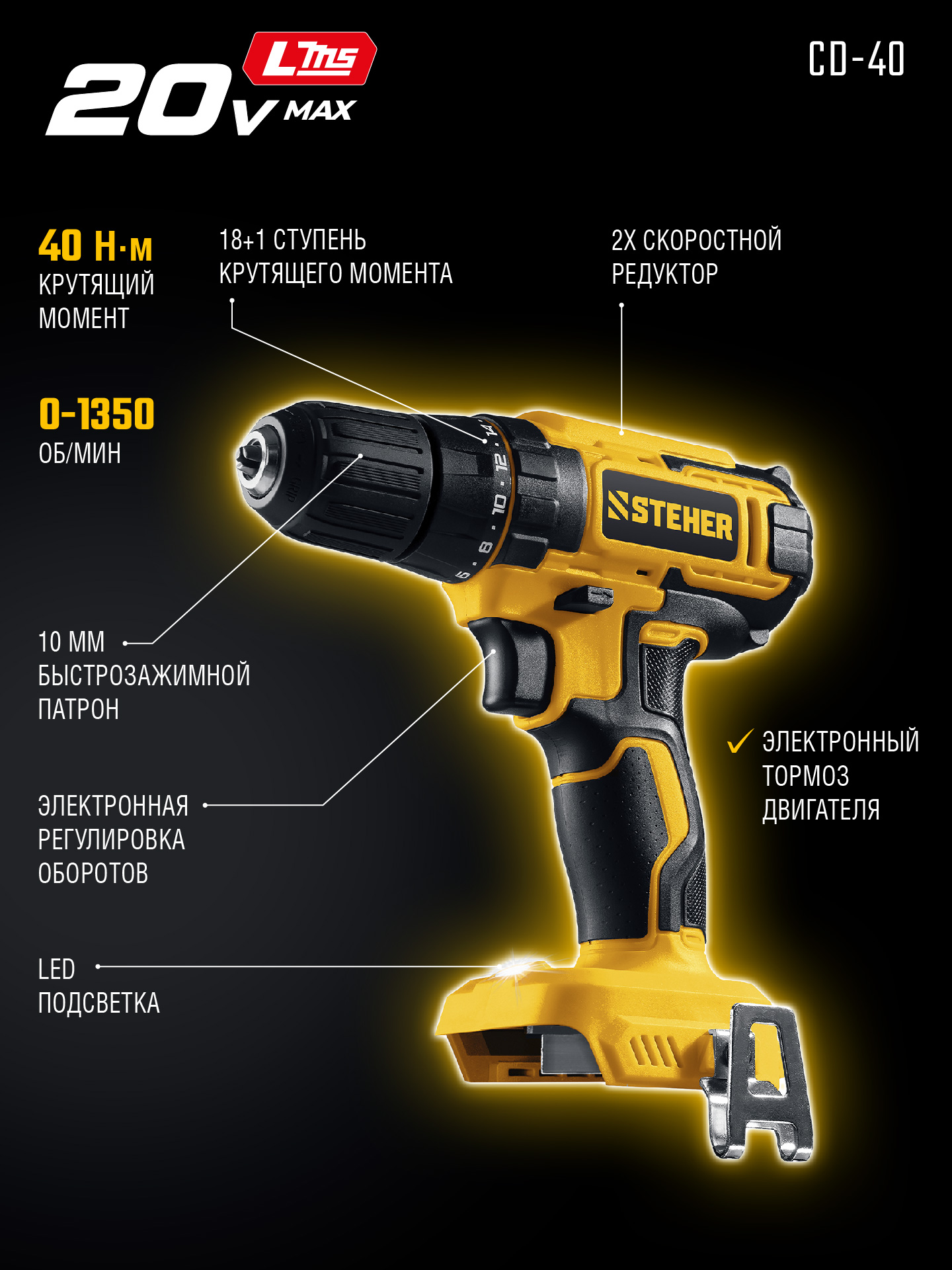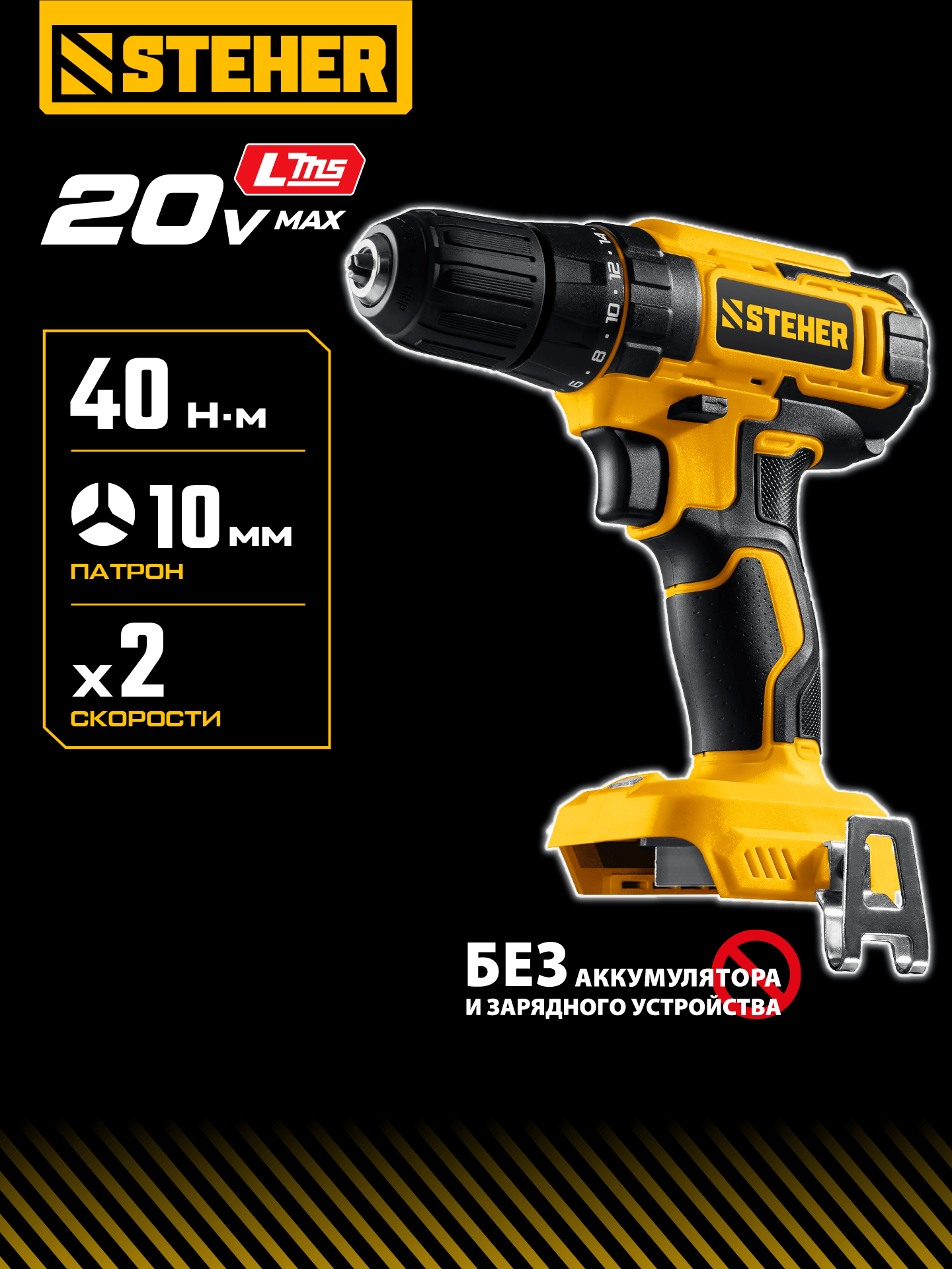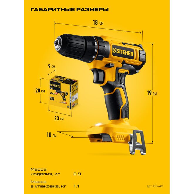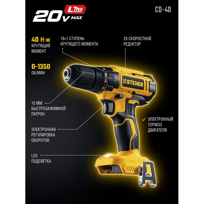 STEHER 20 В, 40 Н·м, без АКБ (LMS), дрель-шуруповерт (CD-40)