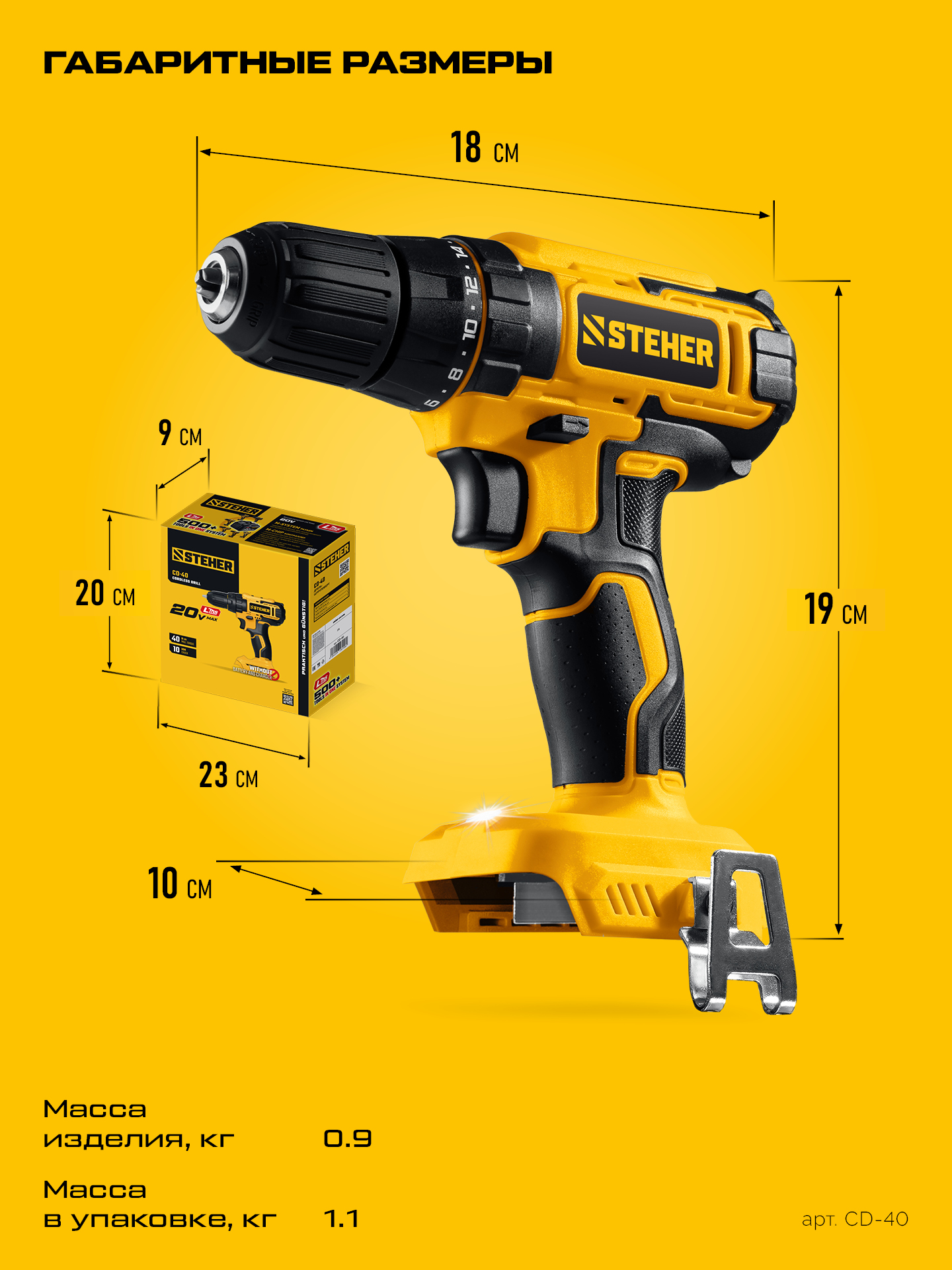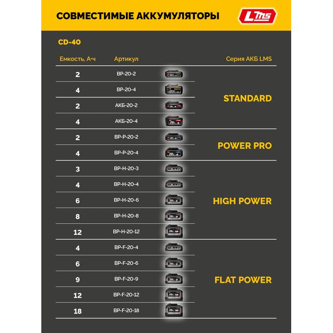 Принадлежности для STEHER 20 В, 40 Н·м, без АКБ (LMS), дрель-шуруповерт (CD-40):