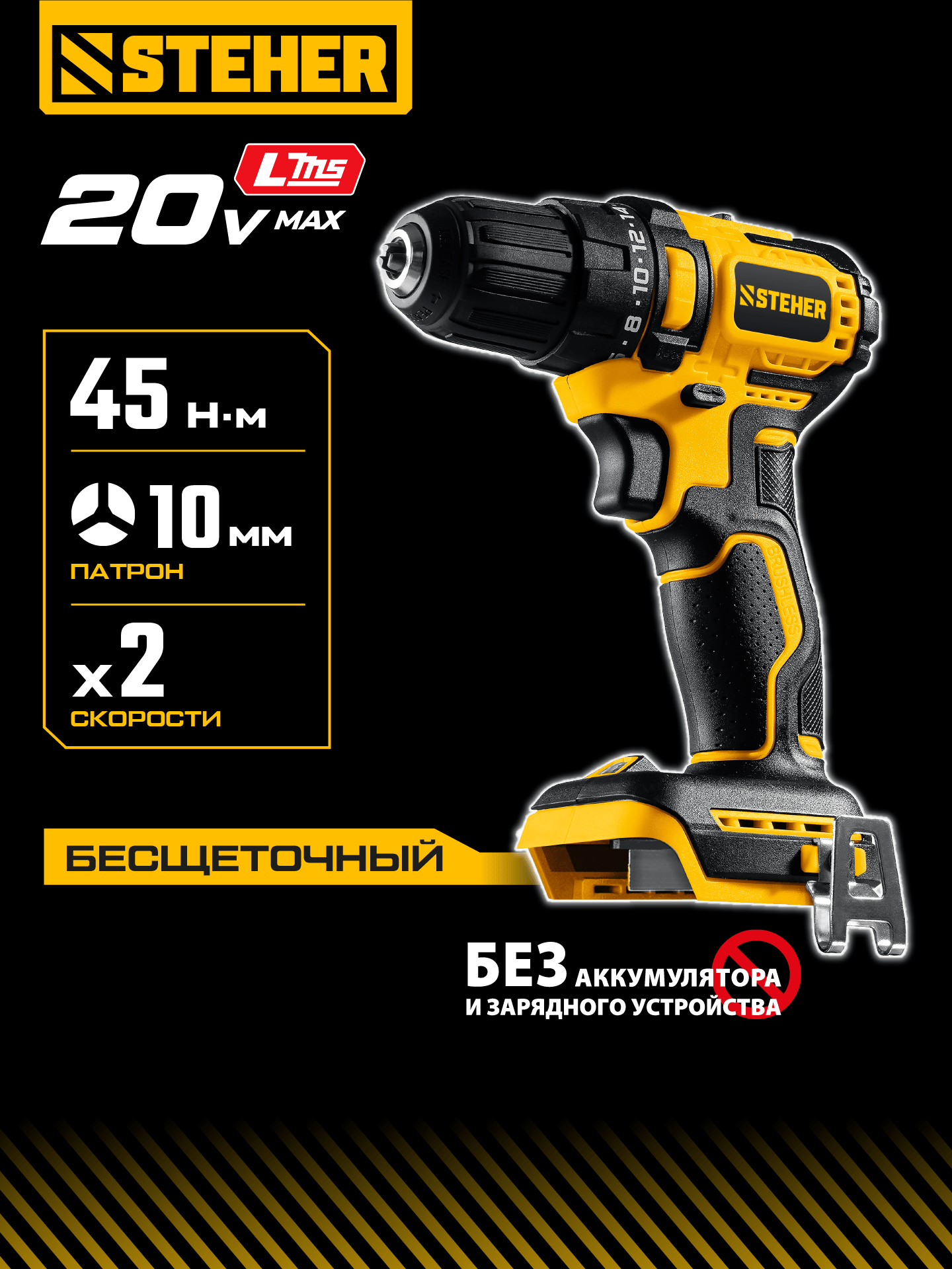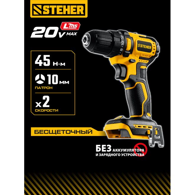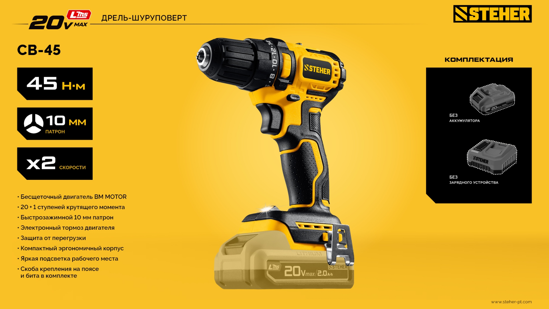 STEHER 20 В, 45 Н·м, без АКБ (LMS), бесщеточная дрель-шуруповерт (CB-45)