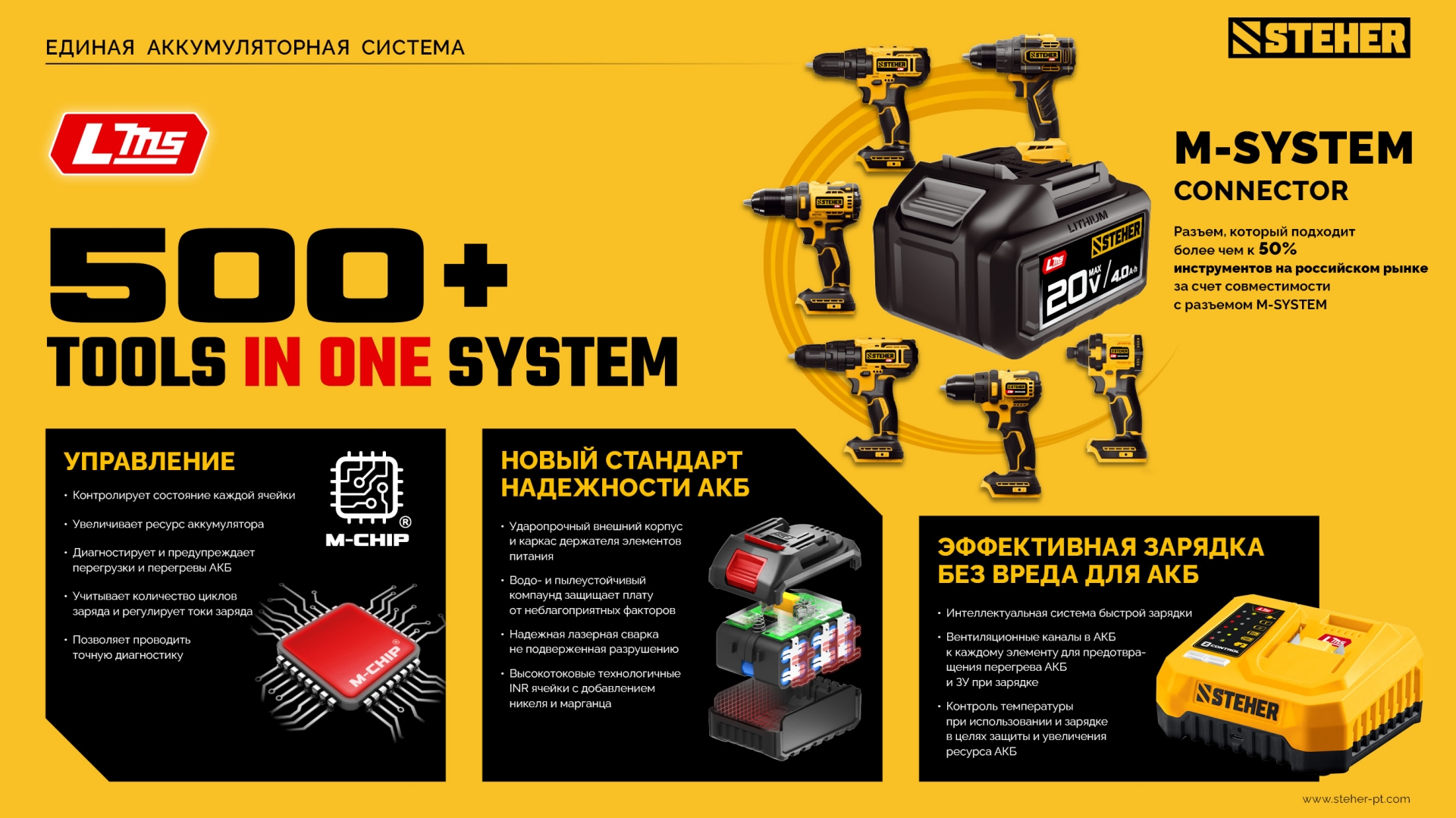 - Аккумулятор универсальной системы LMS повышенной емкости 2.0 А*ч позволяет инструменту работать дольше и эффективнее