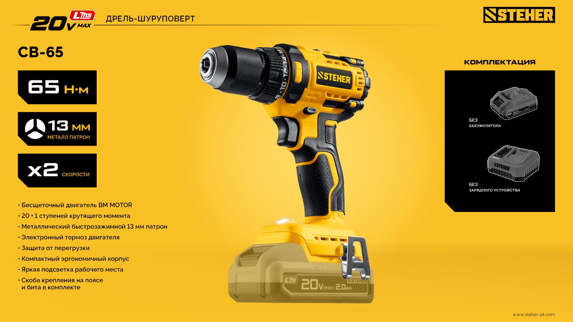 STEHER 20 В, 65 Н·м, без АКБ (LMS), бесщеточная дрель-шуруповерт (CB-65)